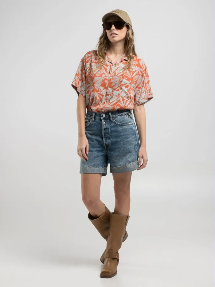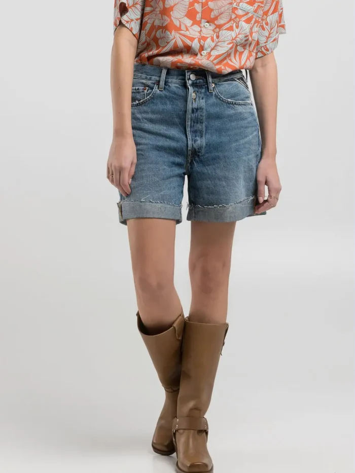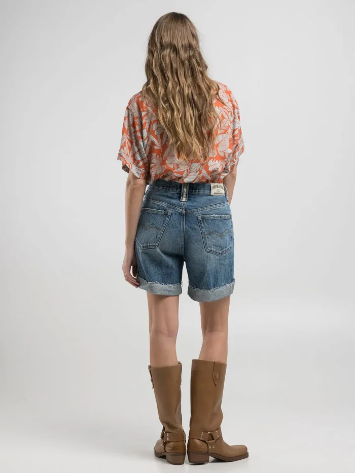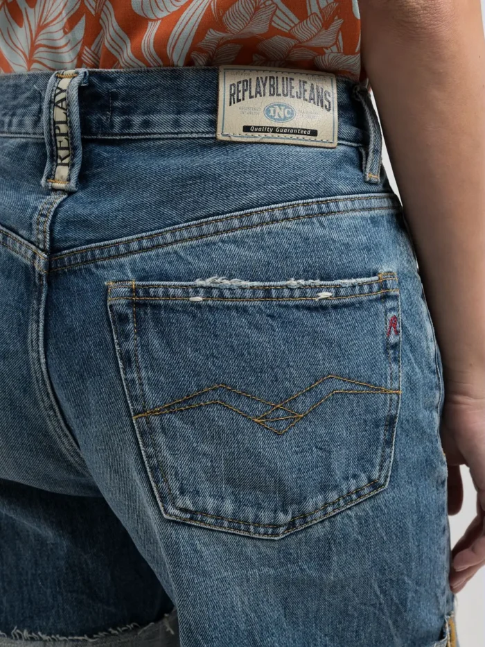 Sirge lõikega viie taskuga lühikesed püksid 12-untsisest puuvillasest indigosinist denimkangast, mis on osaliselt taaskasutatud keskkonnasõbraliku valikuna. Sellel esemel on keskelt seotud valgenduspesu, mis annab rõivale tekstuurse ilme, ja kerge määrdunud töötlus vannis, mis annab teksariidele vananenud ilme. Käsitsi valmistatud kriimustused loovad kulumiskohtadele lisakontrasti. Tagumistel taskutel on meie ikoonilised kajakatiibadega õmblused ja ühel taskul on R-tikand, samas kui ühel esitaskul on väike kaubamärgiga sisetükk. Bränditud silt ja vööaas Replay kirjaga tagaküljel täiendavad neid naiste lühikesi pükse. Nööpkinnitus.
