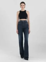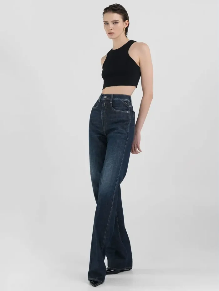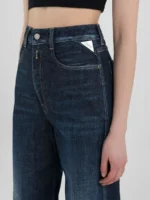 Sirge istuvusega teksad, millel on kõrge vöökoht ja sirge sääreosa puusast allääreni mugavaks istumiseks. See tükk on valmistatud indigost 12 untsi venivast puuvillasest mugavast teksast, millel on tume pesu, ensüümpesu ja vanaaegne värv, mis annab sellele veidi häiritud välimuse. Rõival on käsitsi loodud vurrud ja lihvimine, mis loovad kandmiskohtadele kerge värvikontrasti. Need naiste teksad on viimistletud kaubamärgiga sildi tagaküljel ja väikese kohandatud sisetükiga ühel esitaskul. Tõmbluku ja nööbiga kinnitus. See tükk on osa Atelier kollektsioonist, mis on alahinnatud, naiselike rõivaste rida, mis on loodud kestma.