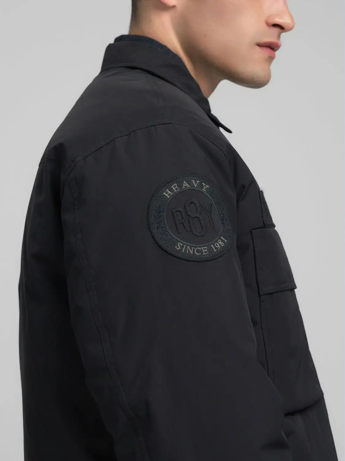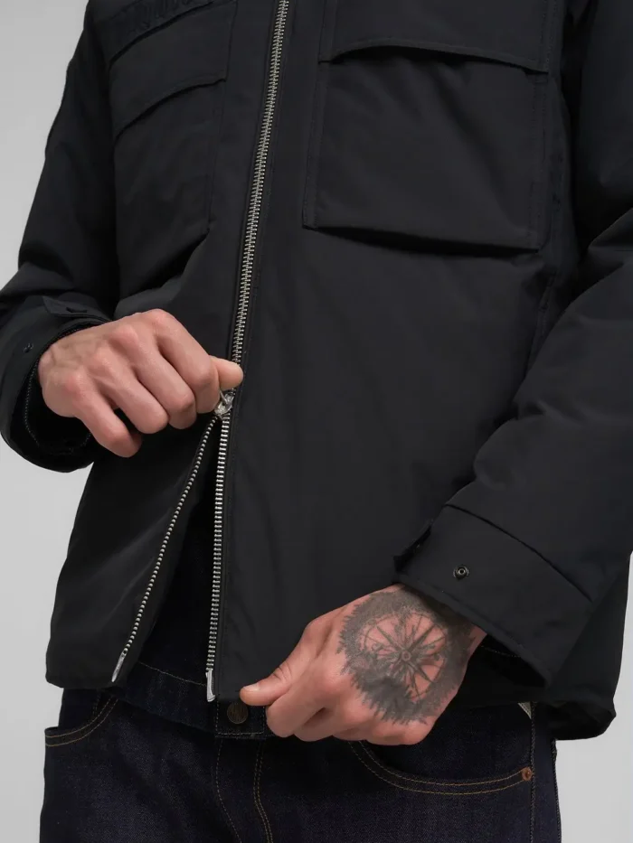 Tavalise lõikega polsterdatud nailonist twill-kangast jope. Jopel on särgikrae ja kaks funktsionaalset klapiga taskut ees, nööpidega kätised isikupärase istuvuse tagamiseks ja kahesuunaline tõmblukk-kinnitus ees. Eripära annavad varrukatel ja rinnal olevad embleemid, millest üks lisab kontrasti ikoonilise Replay punasega.