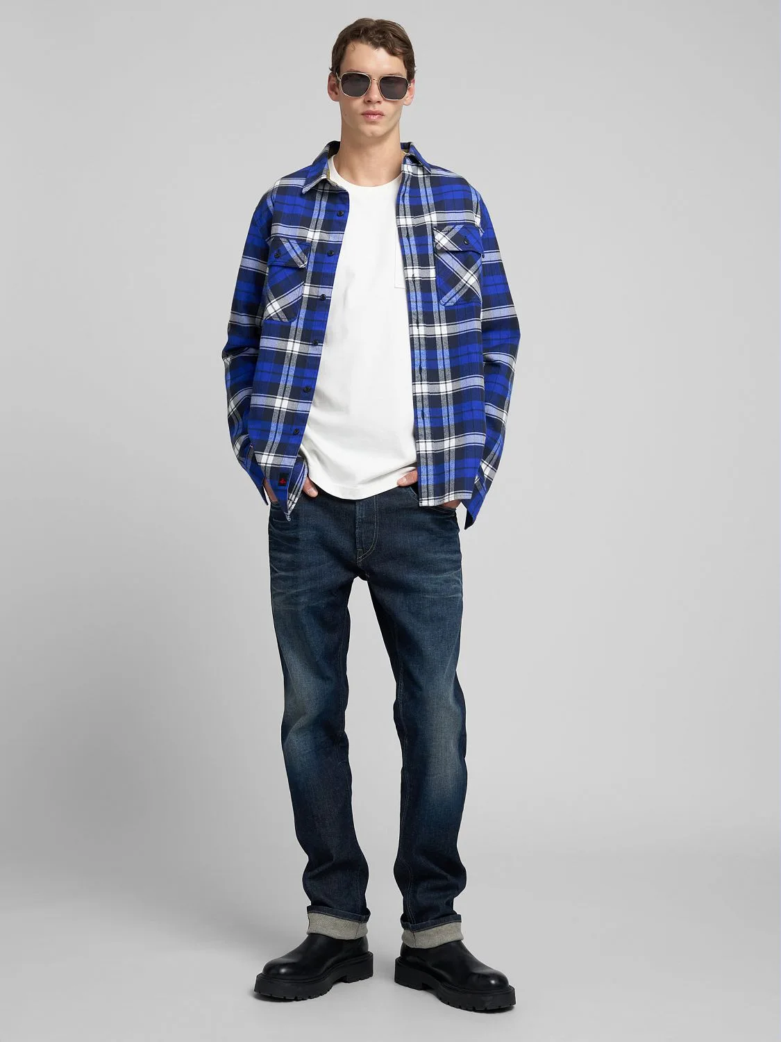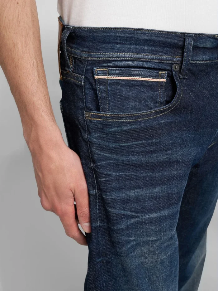 Sirge lõikega teksad tavalise vöökoha ja sirge säärega puusast allääreni mugava istuvuse tagamiseks. See rõivas on valmistatud sügavast indigosinist 11,5-untsisest Hyperflex Reform venivast puuvillasegust teksariidest, millel on toores loputuspesu, kergelt määrdunud efektiga värvimine ja kuivviimistlus. Viie taskuga rõivas on vaiguga töödeldud, vurrude ja lihvitud detailidega ning sellel on ka mikrohõõrdumised kulumispiirkondades, mis annavad sellele täiesti linliku ilme. Tagumistel taskutel on meie ikoonilised kajakatiibade õmblused ja ühel taskul on R-tikand, samas kui ühel esitaskul on väike kaubamärgiga sisetükk. Luku ja nööbiga kinnitus.