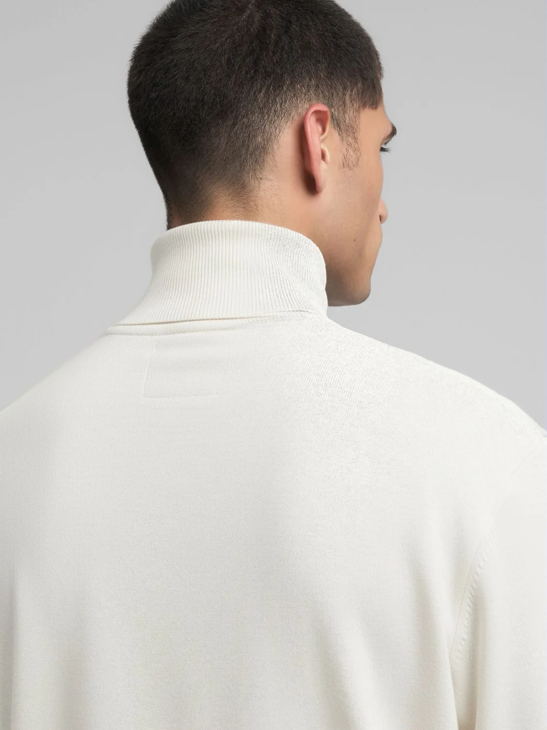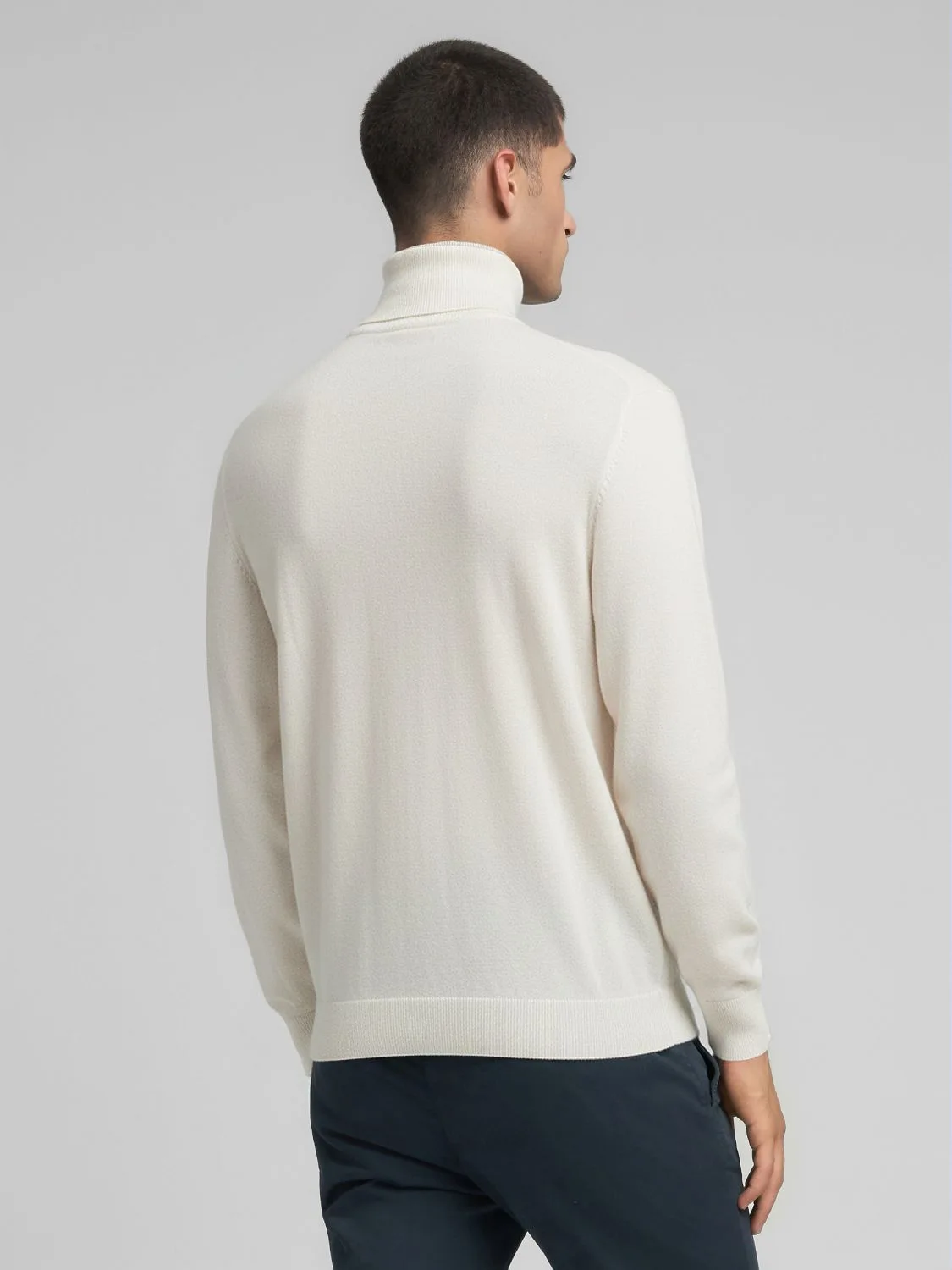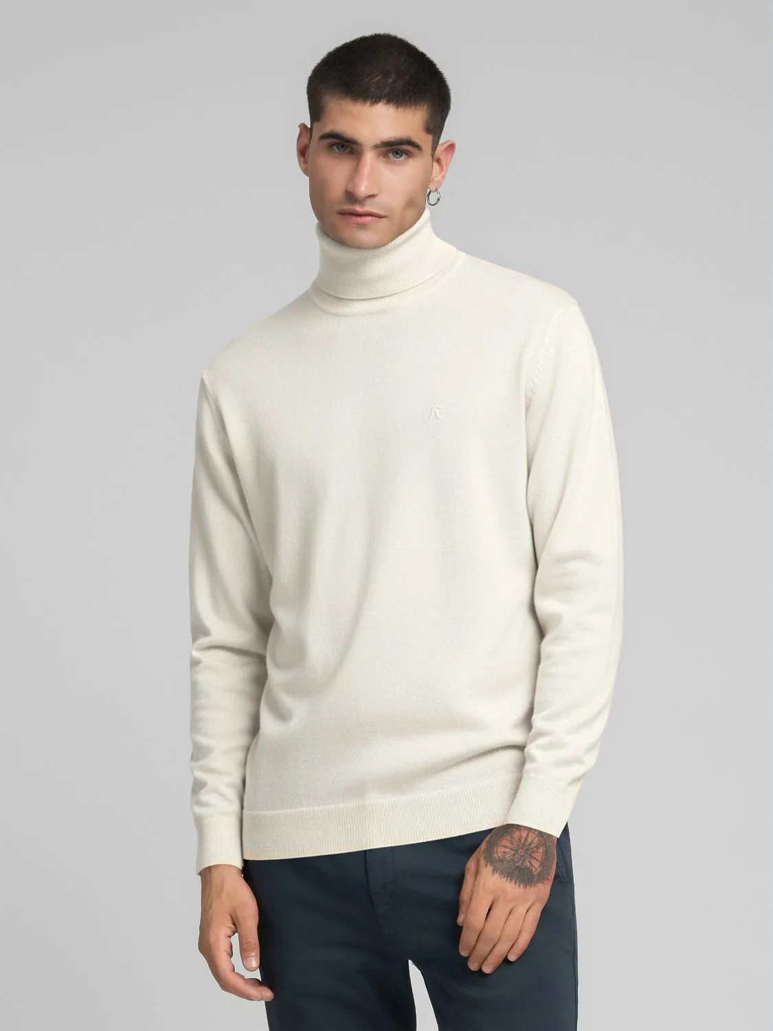 Regular-fit lõikega kõrge kaelusega kampsun, valmistatud pehmest ja mugavast puuvilla-kašmiirisegust. Mudelil on pikad varrukad kergelt langevate õlgadega ning soonikkootud kaelus, varrukaotsad ja alläär. Disaini lõpetab rinnal toon-toonis tikitud ikooniline R-logo.