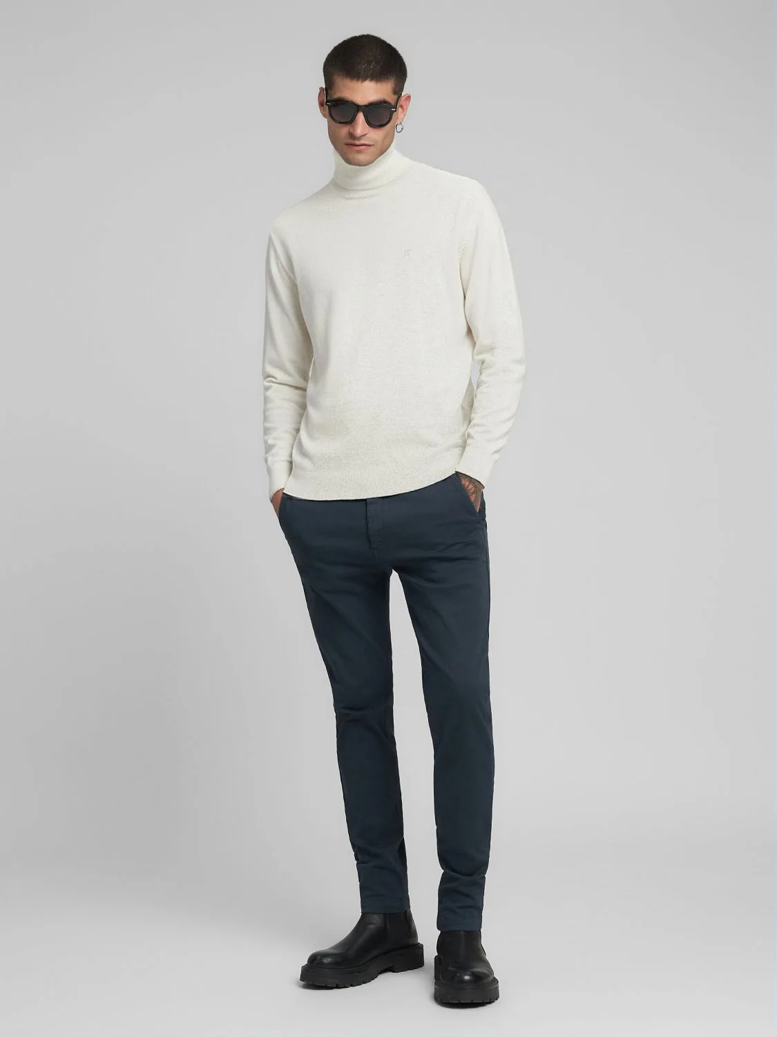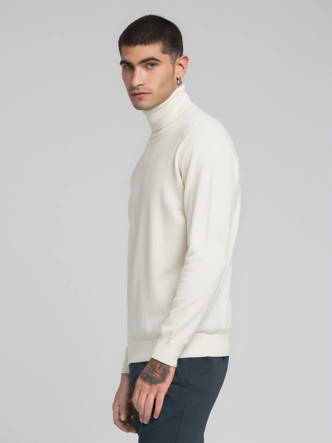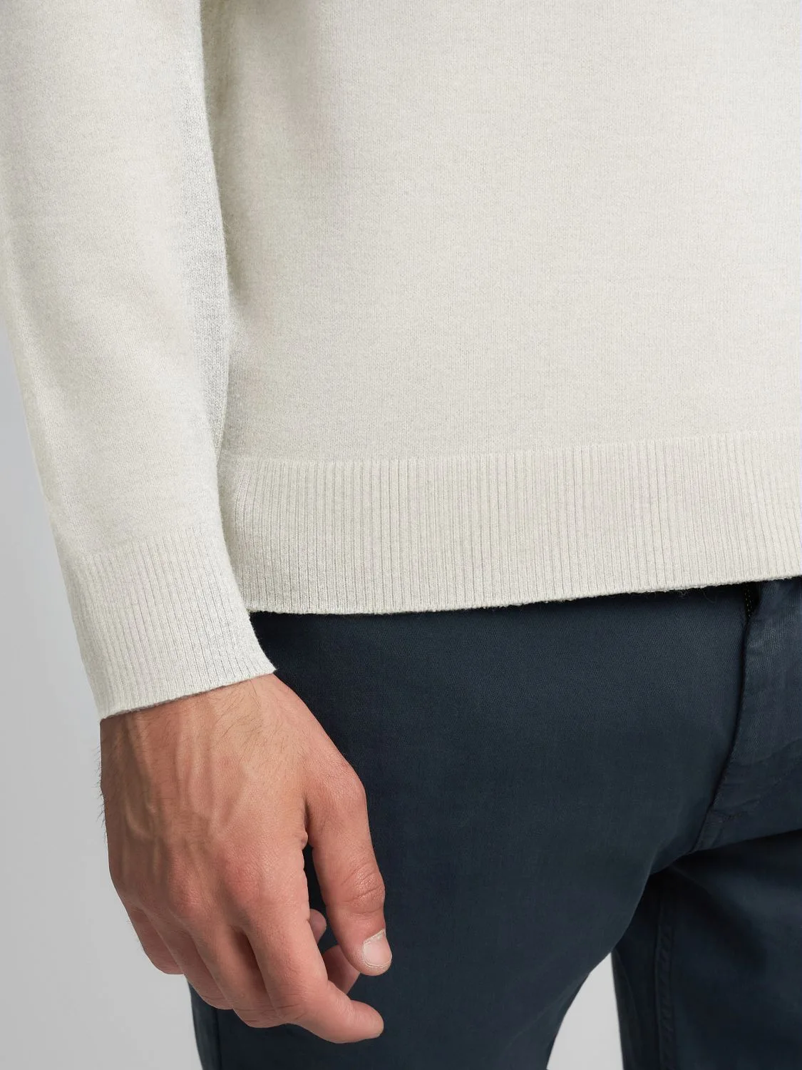 Regular-fit lõikega kõrge kaelusega kampsun, valmistatud pehmest ja mugavast puuvilla-kašmiirisegust. Mudelil on pikad varrukad kergelt langevate õlgadega ning soonikkootud kaelus, varrukaotsad ja alläär. Disaini lõpetab rinnal toon-toonis tikitud ikooniline R-logo.
