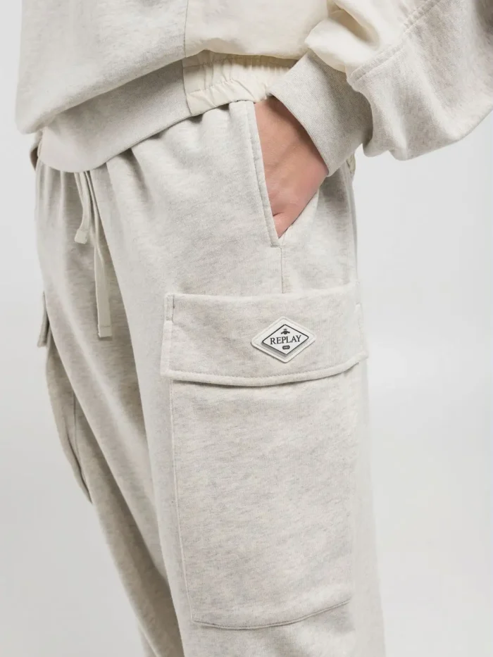 Sellel tükil on reguleeritav veniv pingutusnööriga vöökoht, millel on kaks diskreetset küljetaskut ja kaks funktsionaalset klapitaskut säärel, millest üks on viimistletud ikoonilise Replay-logoga.