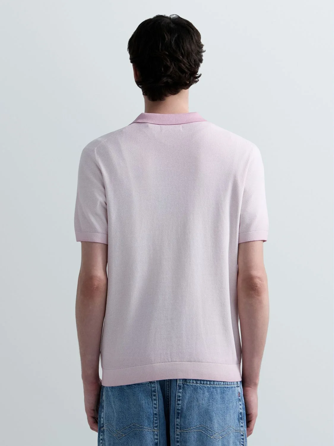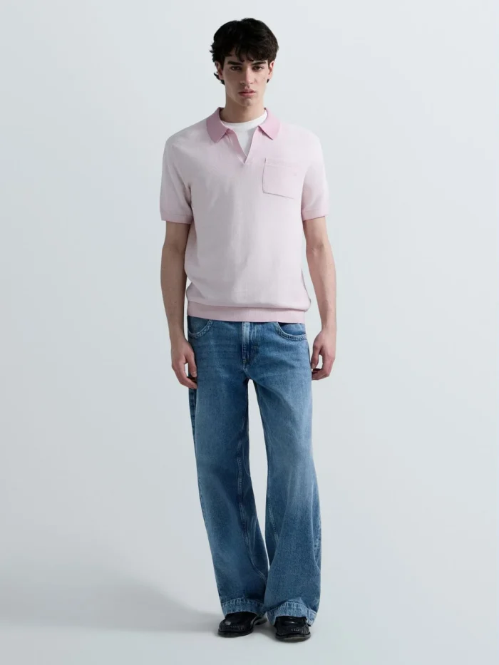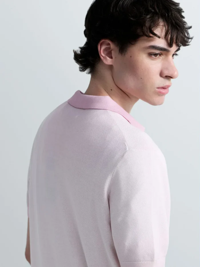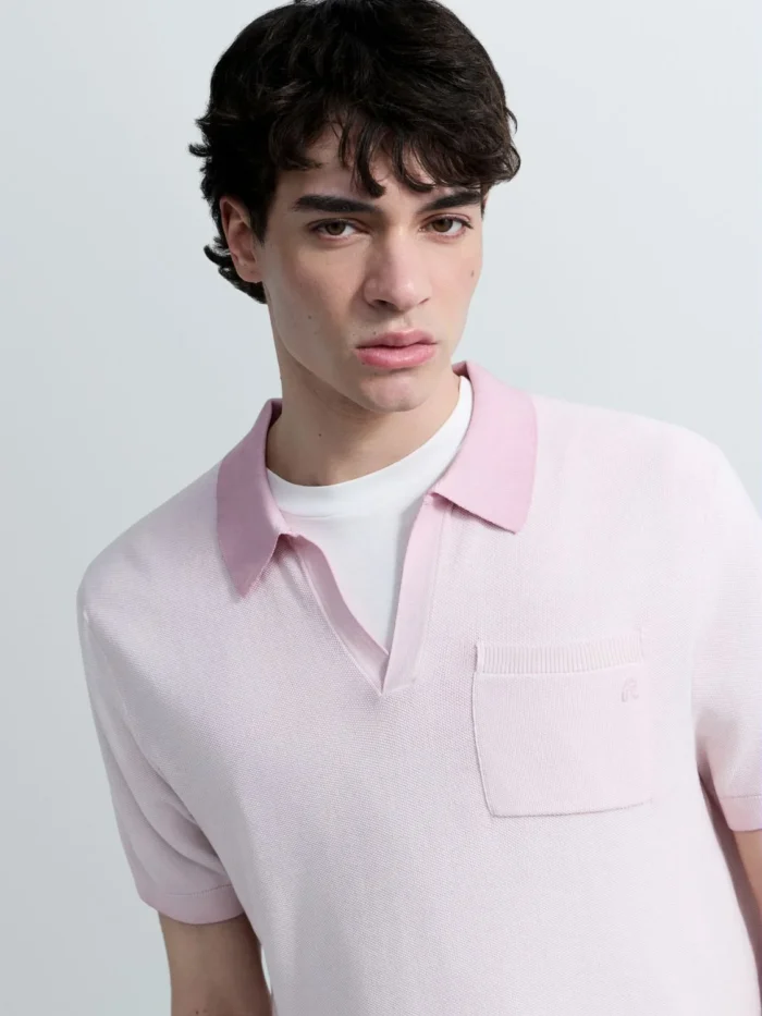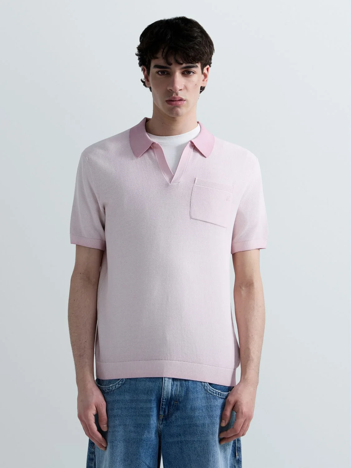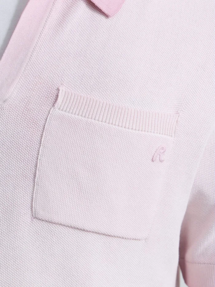 Regular-fit lõikega polo, valmistatud pehmest puuvillasest kangast, millel on eriline varjutatud efekt krae, rinnatasku, varrukaotste ja allääre juures. Lühikeste varrukatega mudelil on kontrastne krae väikese V-kujulise avausega ning rinnatasku. Tasku ülemine serv, varrukaotsad ja alläär on viimistletud soonikkoes äärisega. Disaini täiendab rinnataskul toon-toonis ikooniline tikitud R-detail.
