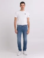 Lihtsad teksad, millel on tavaline istuvus ja kitsenev sääreosa mugavuse tagamiseks. Autentse välimusega rõivas on valmistatud 10,5 oz Hyperflex Re-Used Reform indigo stretch puuvillasest teksast, millel on tume kivipestud pesutoon. Viie taskuga eset iseloomustavad käsitsi valmistatud kriimustused, mis loovad kasutatud aladele kontrastsed värvid. Tõmblukk ja nööp.