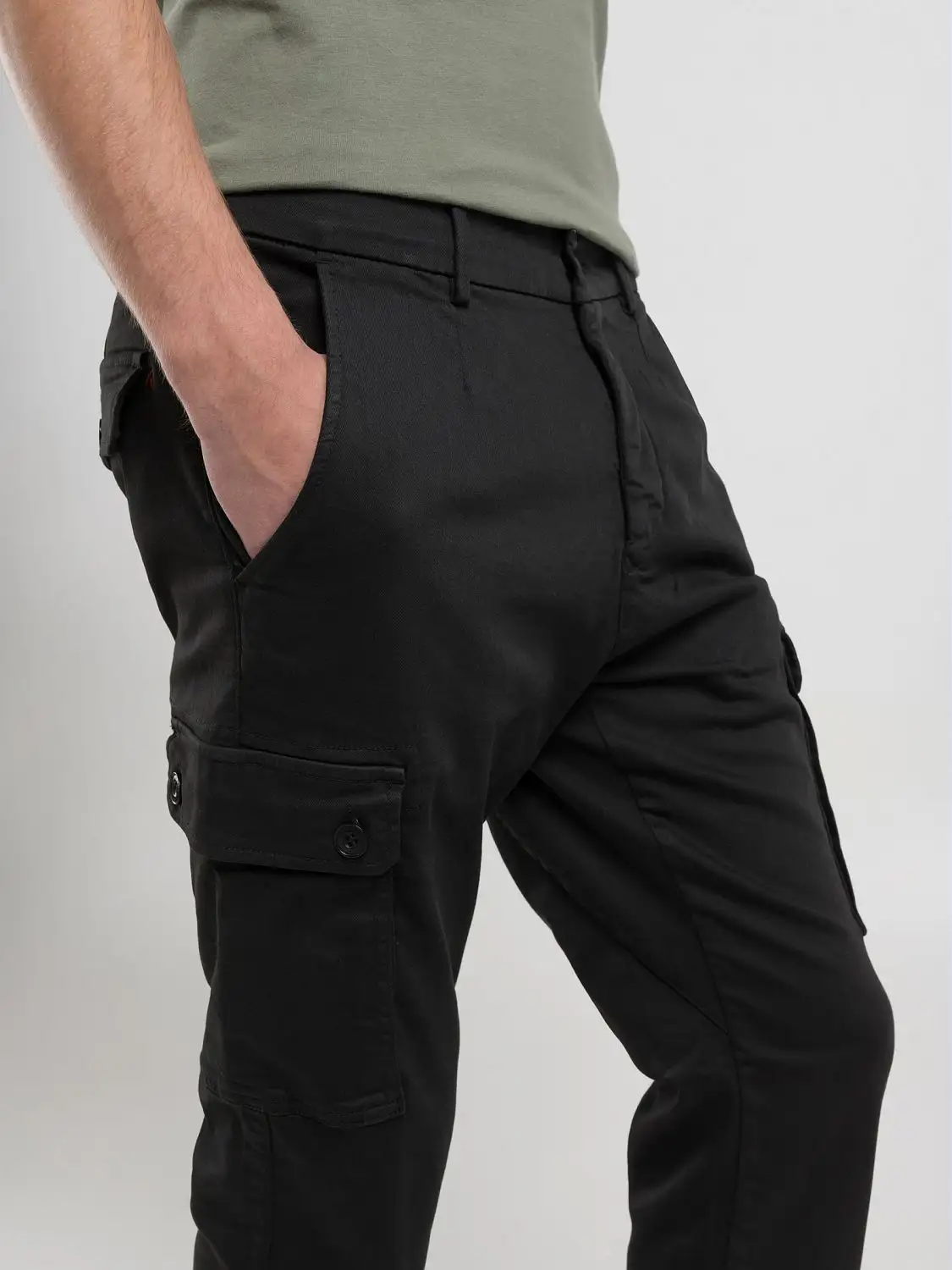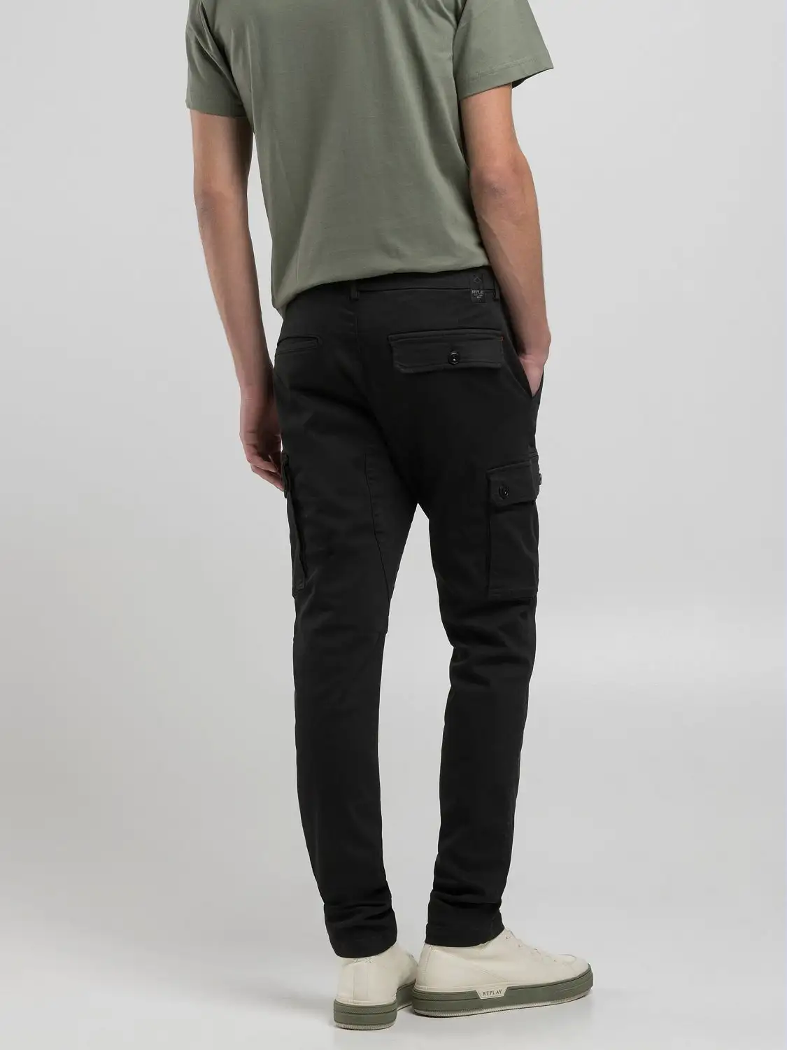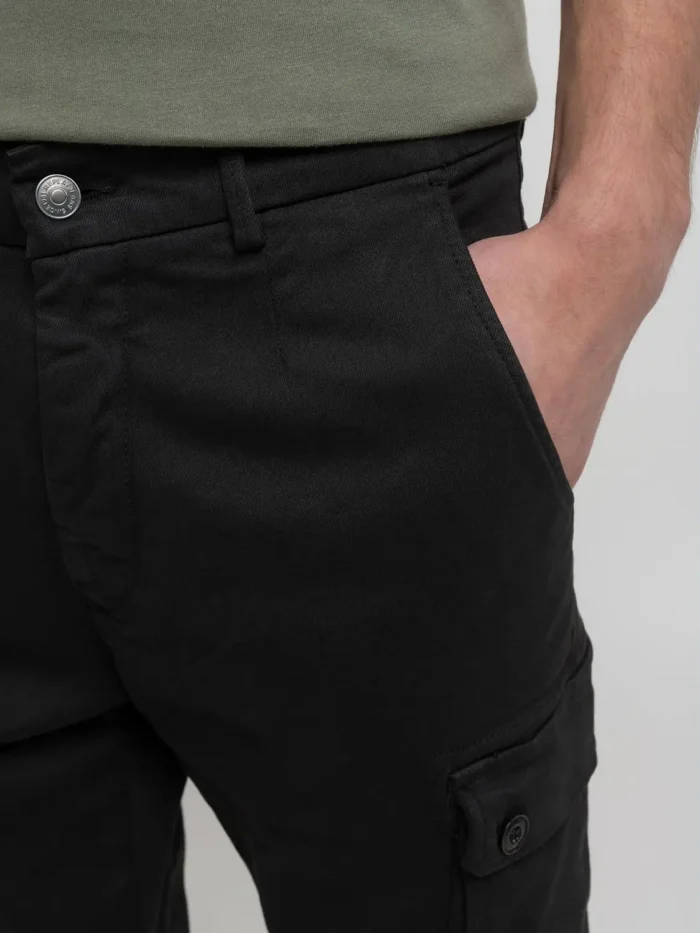 Kitsa lõikega cargo-teksad tavalise vöökoha ja liibuva säärega. See ese on valmistatud 10,5-untsisest eriti kergest venivast puuvillasest Hyperflex teksariidest, mis sobib igaks aastaajaks. Rõivas on värvitud vana värviga ja pestud kiviga. Nendel meeste teksadel on kaks kaldus esitaskut, kaks nööbitava klapiga taskut säärel ja kaks taskut tagaküljel, millest üks on vöötasku ja teine nööbitava klapiga ja R-tikandiga tasku. Väike eritellimusel tehtud vahetükk tagaküljel annab disainile viimase lihvi. Luku ja nööbiga kinnitus.