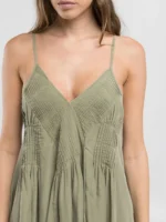 Minikleit lahedast ühevärvilisest linasest lüotselli segust. Sellel disainil on sügav V-kaelus, volditud keha esi- ja tagaküljel ning õhukesed reguleeritavad rihmad. Meie ikooniline R-neet tagaküljel lisab tükile viimase lihvi