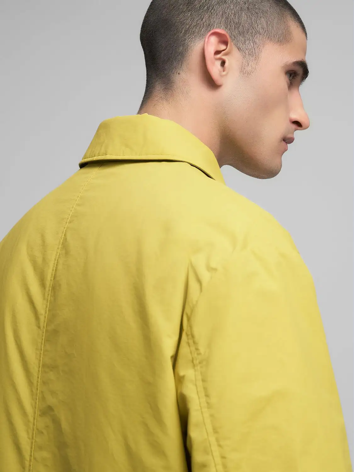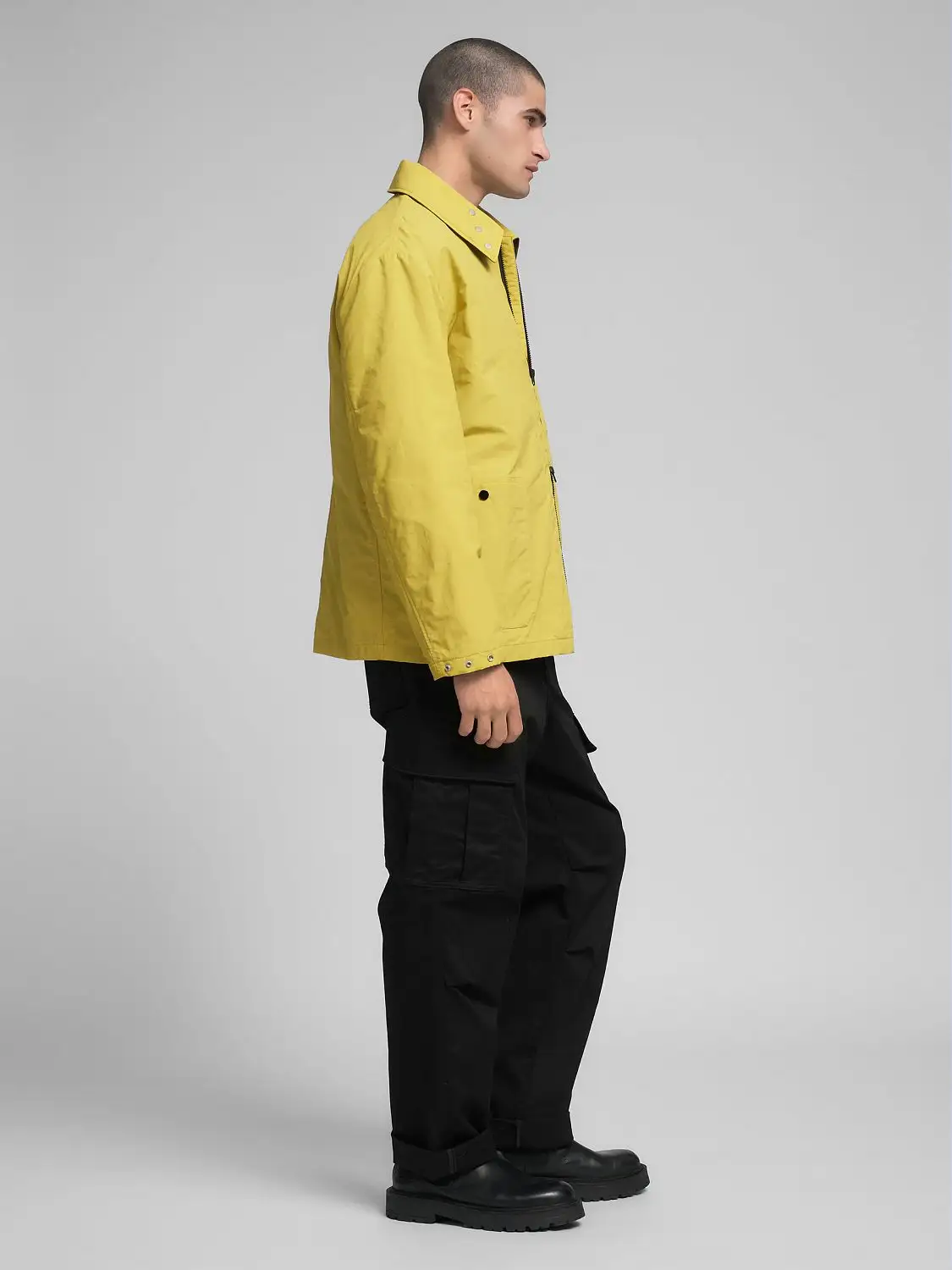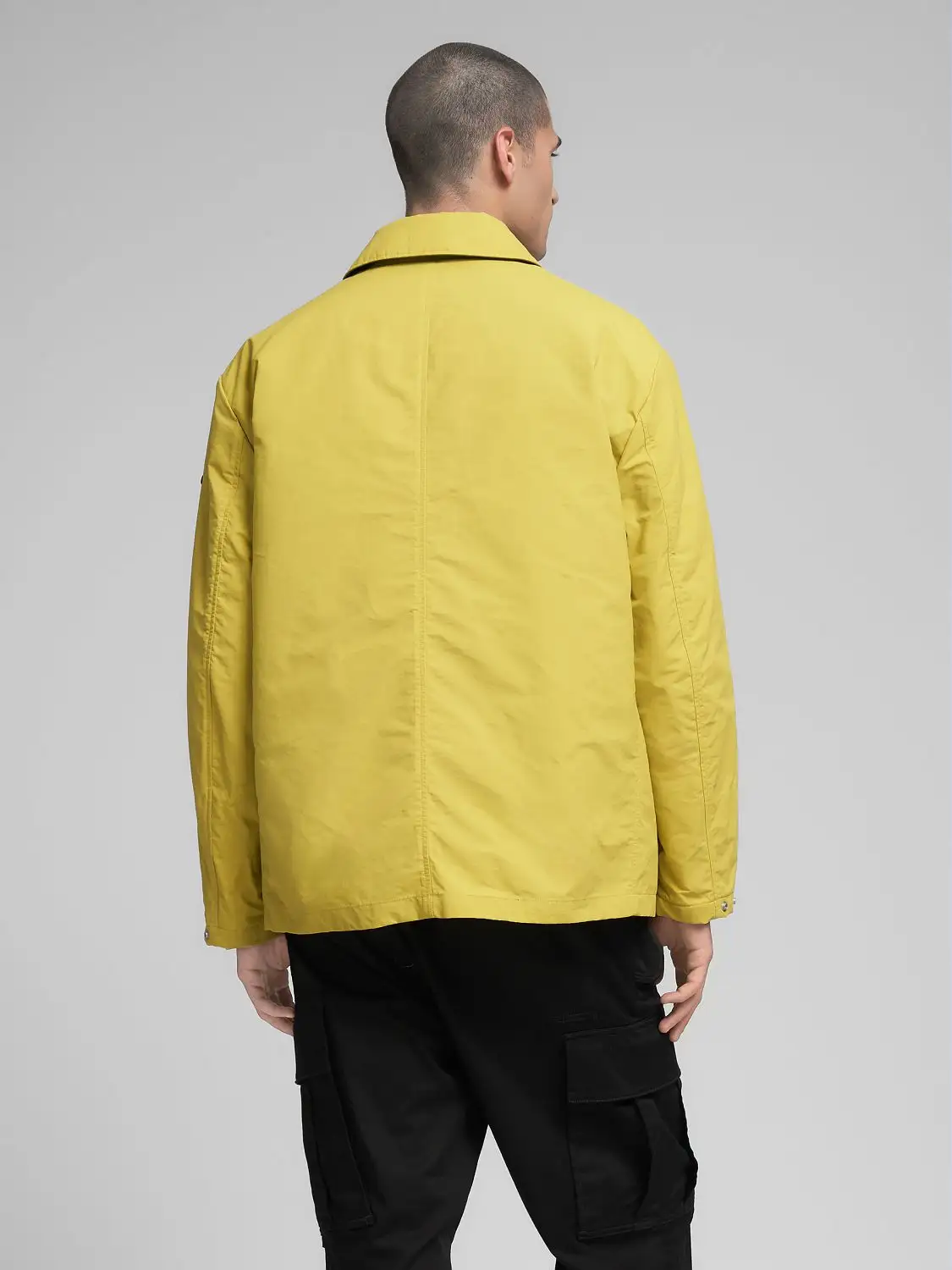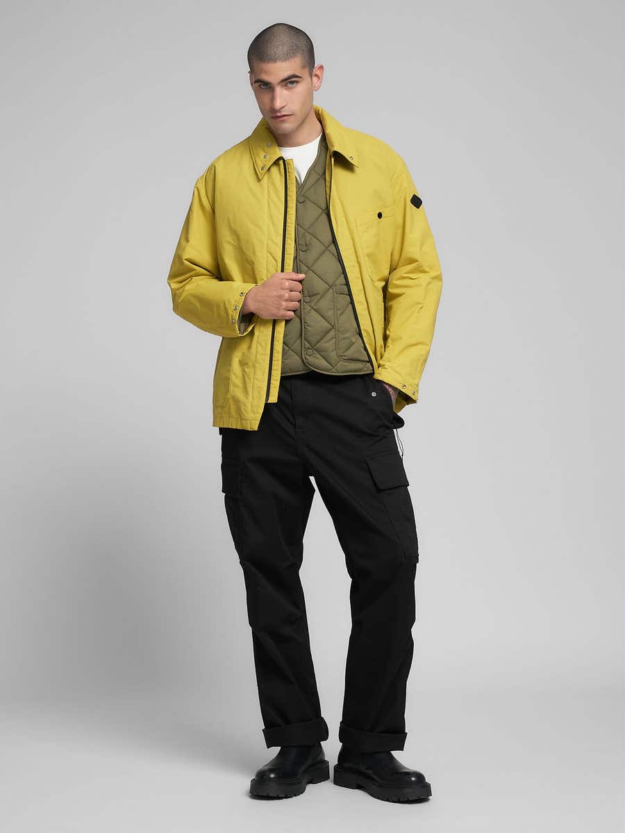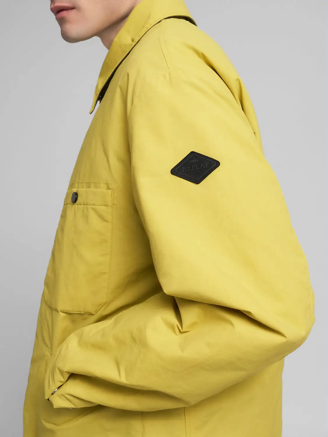 Tavalise lõikega polsterdatud jakk nailonist ja puuvillasegust kangast, vahatatud viimistlusega. Sellel ratturist inspireeritud stiilil on terav krae, millel on reguleeritav kinnitus trukkidega, nööpidega rinnatasku ja kaks topeltnööbiga taskut ees ning praktiline kahesuunaline lukk. Varrukal olev teemantlogo viimistleb disaini, lisades iseloomuliku Replay detaili.