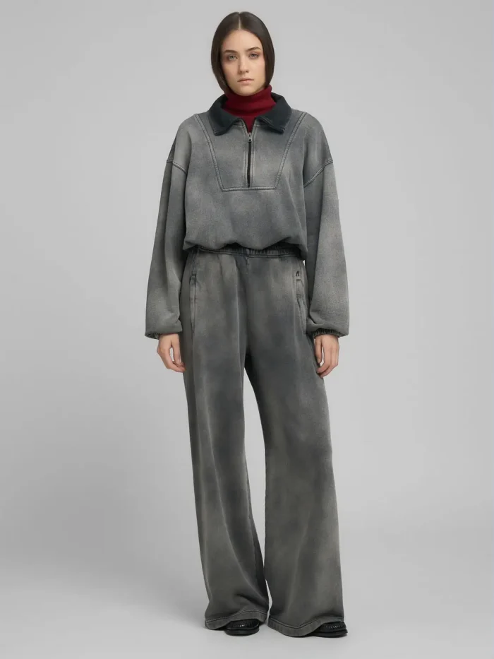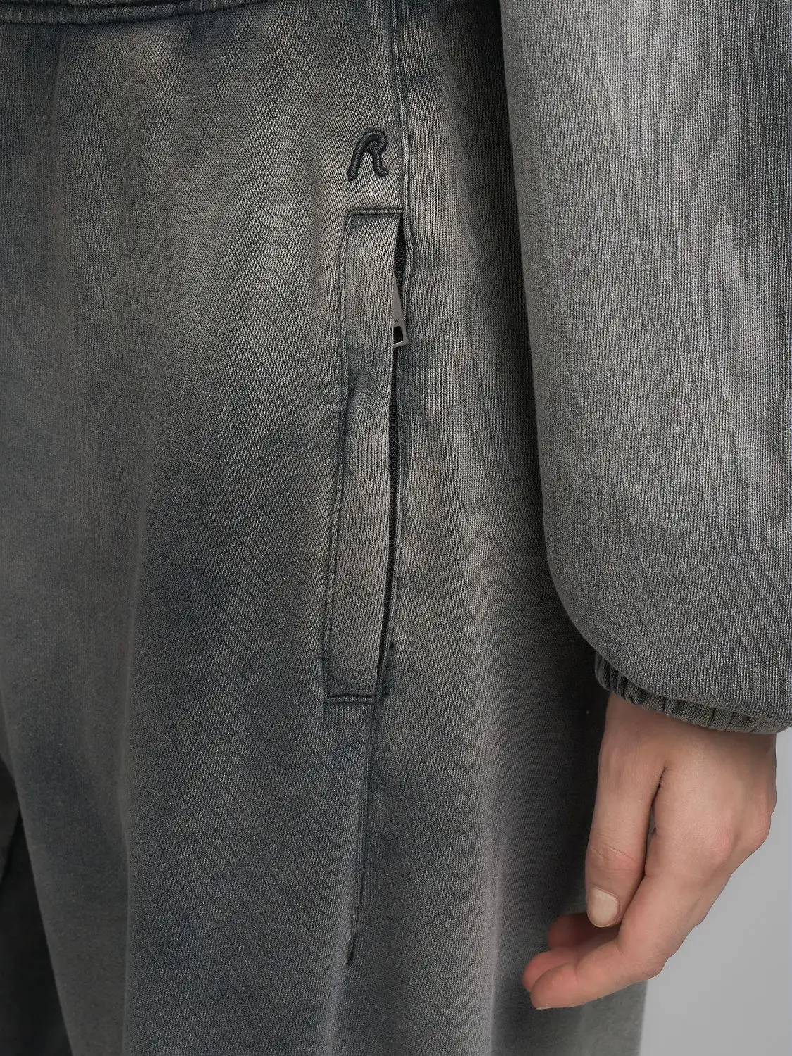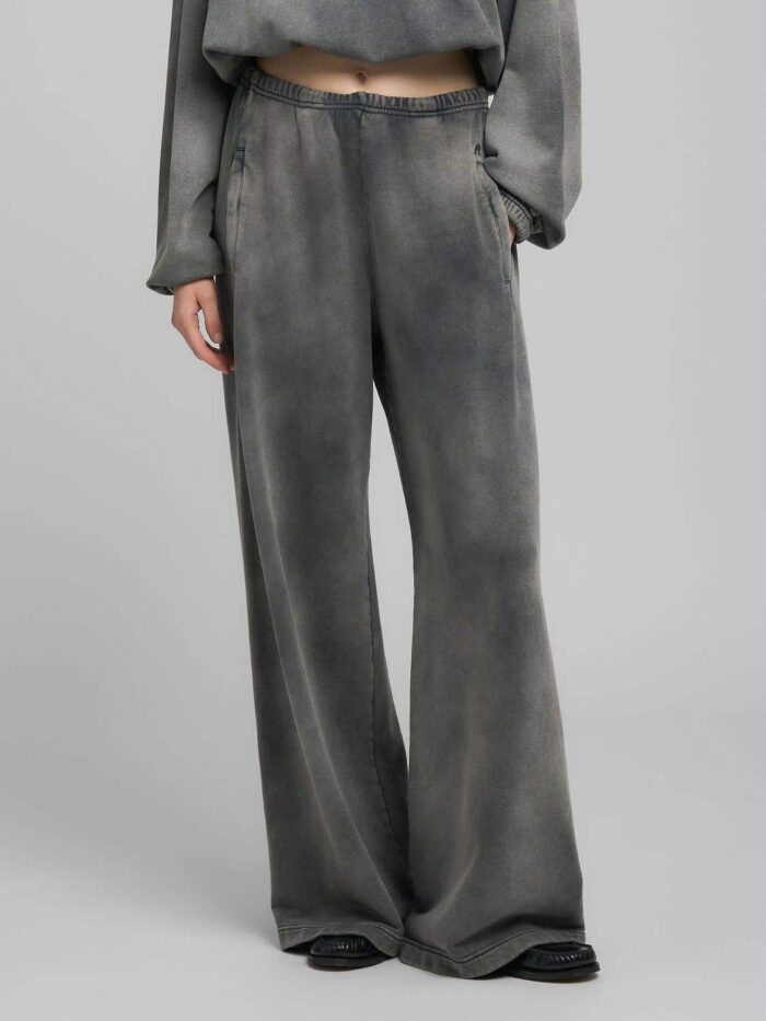 Laiad püksid pehmest, rõivasvärvitud ja pleegitatud puhast puuvillafliisist. Püksil on elastne vöökoht ja kaks külgedelt taskut ning küljel on meie ikooniline R-tikand.