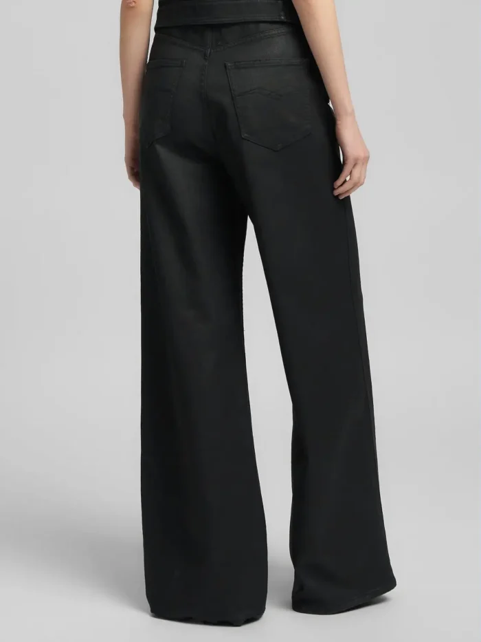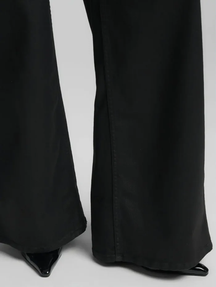Laiad madala vöökohaga teksad laiade ja lõdvestunud säärega, mis on valmistatud 11-untsisest mustast puuvillasest mugavast teksariidest, mis on ülevärvitud mustaks. Sellel mudelil on kaks eesmist kaldtaskut ja kaks tagaküljel olevat pealekantavat taskut meie ikoonilise kajakatiivakujulise õmblusega, millest üks on viimistletud R-tikandiga. Nööp- ja lukukinnitus. Äärise mõõt: 33 cm.