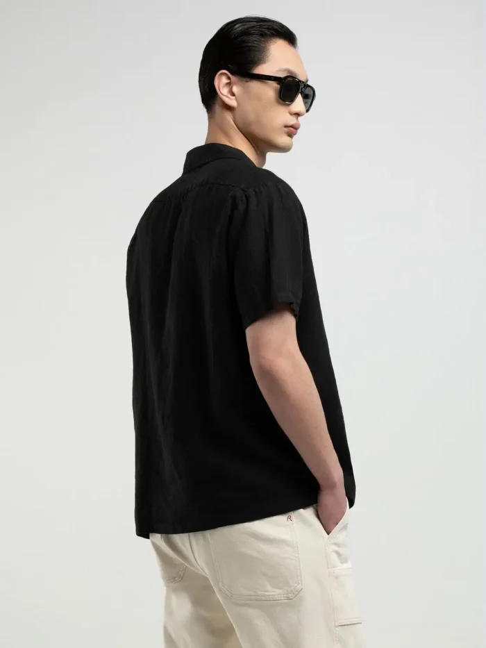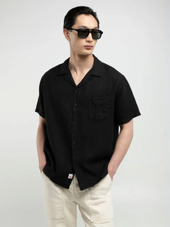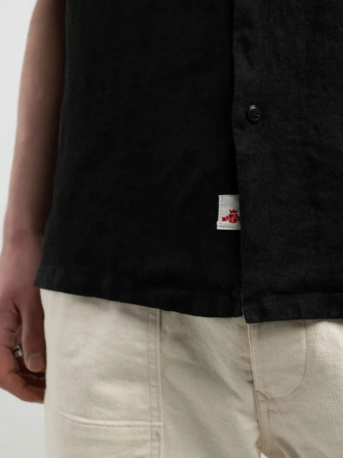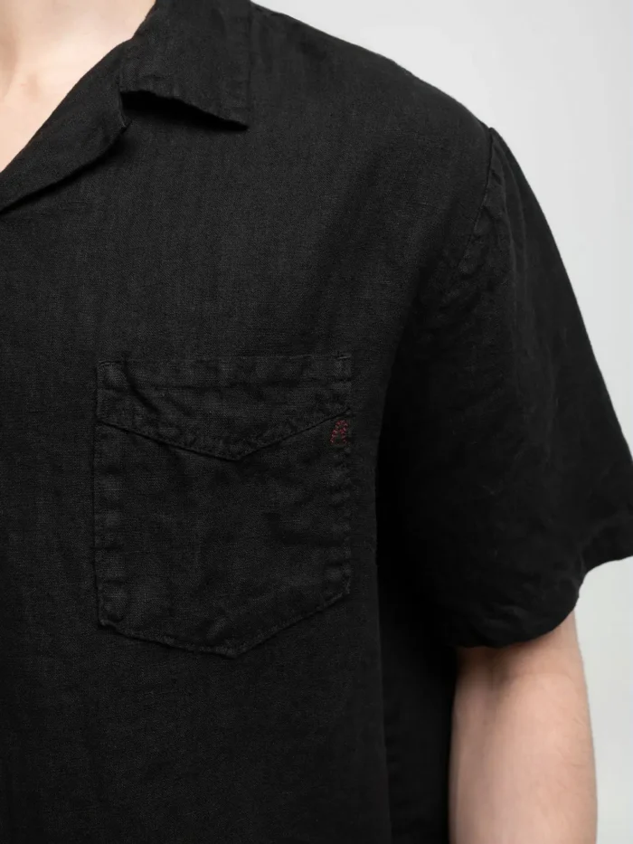 Lühikeste varrukatega särk lahedast rõivavärviga linasest. Sellel tükil on Kuuba krae ja klapiga rinnatasku, mis on viimistletud ikoonilise R-tikandiga. Ees olev nupukinnitus lisab viimistluse.