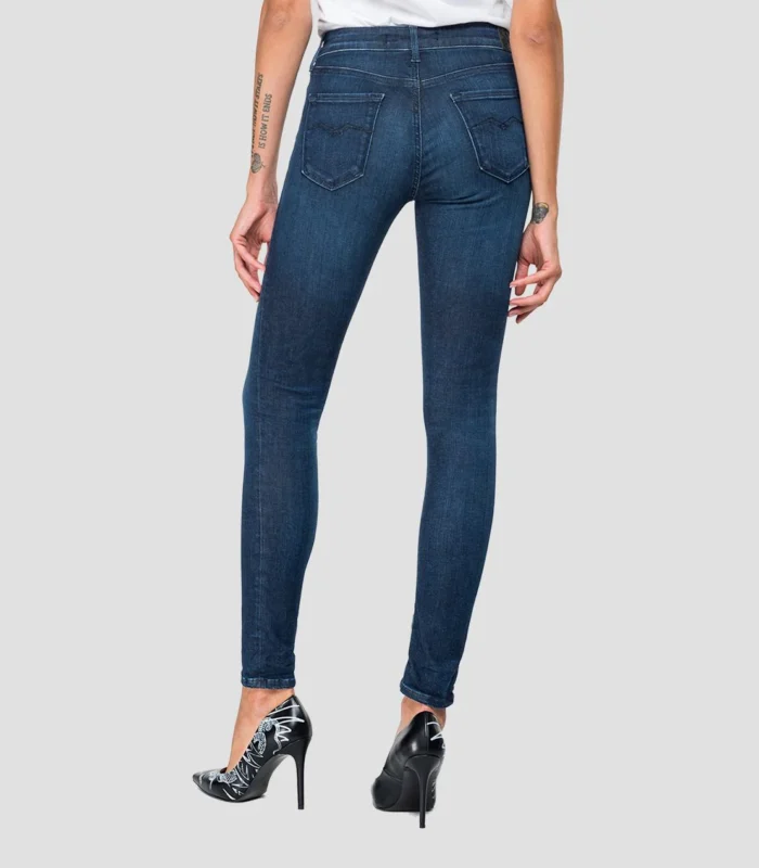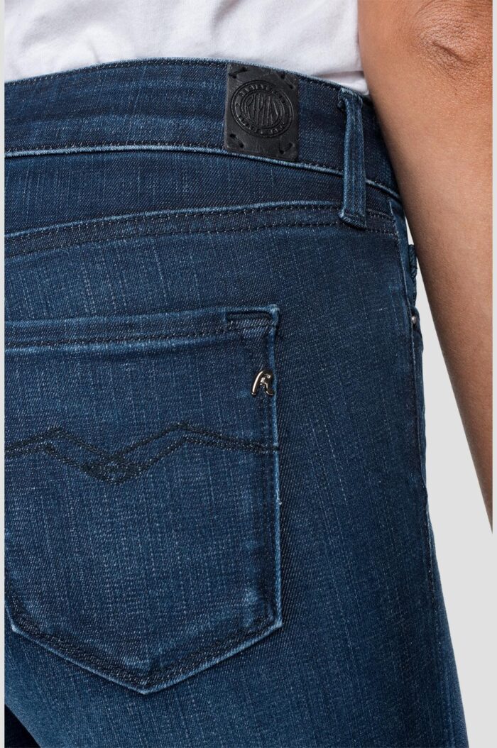Kõrge vöökohaga kitsad teksad 11,5 untsi paksusest Hyperflex™ indigost venivast teksast, tumedat pesutooni, käsitsi valmistatud vurrud ja kriimustused, tugevad kontrastid rohkem kasutatavatel aladel ja lõplikult kuivatatud 3D mannekeenil. Kõrge vöökoht ja kõhn säär, viis taskut, tõmblukk ja nööpkärbes, kolmnurk REPLAY logoga vasakul taskul, münditasku ja tagataskud ikooniliste kajakaõmblustega, logosilt vöörihma tagaküljel, R-kujuline tikandid tagataskul . Hyperflex Clouds sarja viie taskuga teksapüksid ühendavad suure paindlikkuse autentse REPLAY teksastiiliga. Need paistavad silma tipptasemel pesutehnoloogia kasutamise poolest, mis hõlmab ensüüme, mis ei tekita mürgiseid jäätmeid ja säästavad kuni 75% vett. Tulemuseks on vastutustundlik lähenemine ja tähelepanu keskkonnale, mis on alati olnud osa brändi filosoofiast.