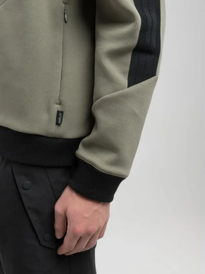 Kõrge kaelusega tõmblukuga dressipluus pehmest ja vastupidavast venivast puuvillasegust tehniliste kangaste vahetükkidega. Sellel tavalisel istuvusega rõival on kaks praktilist lukuga küljetaskut ning sooniku alläär ja kätised. Seda kujundust täiendab meie arhiivi logo silt, mille esiküljel on Replay kiri.