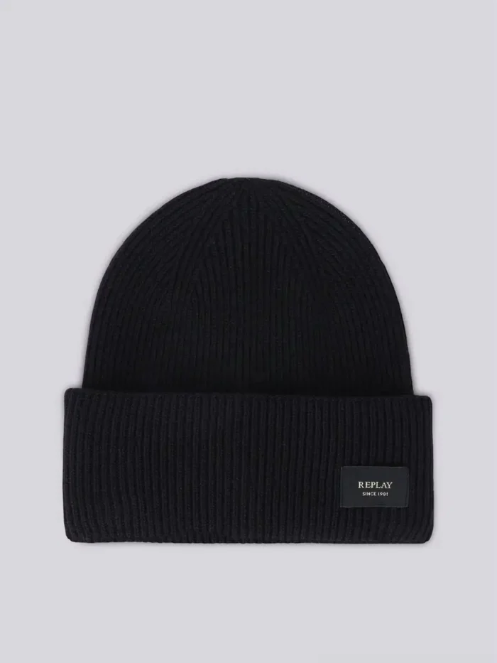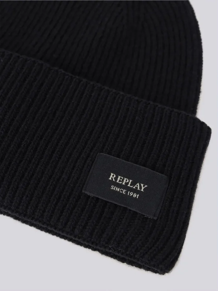 Müts on valmistatud pehmest ja soojast soonikkoes taaskasutatud villast ja kašmiirisegust kangast. Mütsi ülaosas on logo, mis annab edasi brändi olemust. Taaskasutatud kašmiiri kasutamine kinnitab Replay pühendumust jätkusuutlikule moele. 40% VILL; 30% VISKOOS; 20% POLÜAMIID/NAILON; 10% KAŠMIIRS;