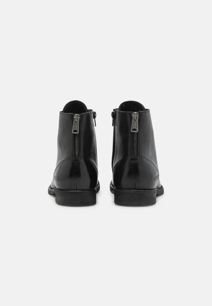 Mustad nahast poolsaapad, siseküljel lukk ja tagaküljel dekoratiivlukk.