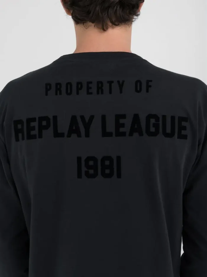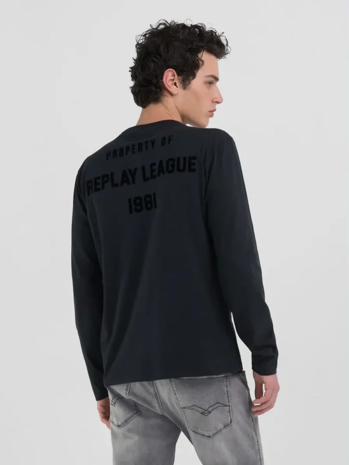 Pikkade varrukatega tavalise kaelusega T-särk puhtast puuvillasest jersey kangast, mis tagab pehmuse ja vastupidavuse. Kohandatud kiri rinnal, mis on näha ka seljal maksimaalsuuruses, annab rõivale erilise linnaliku esteetika.