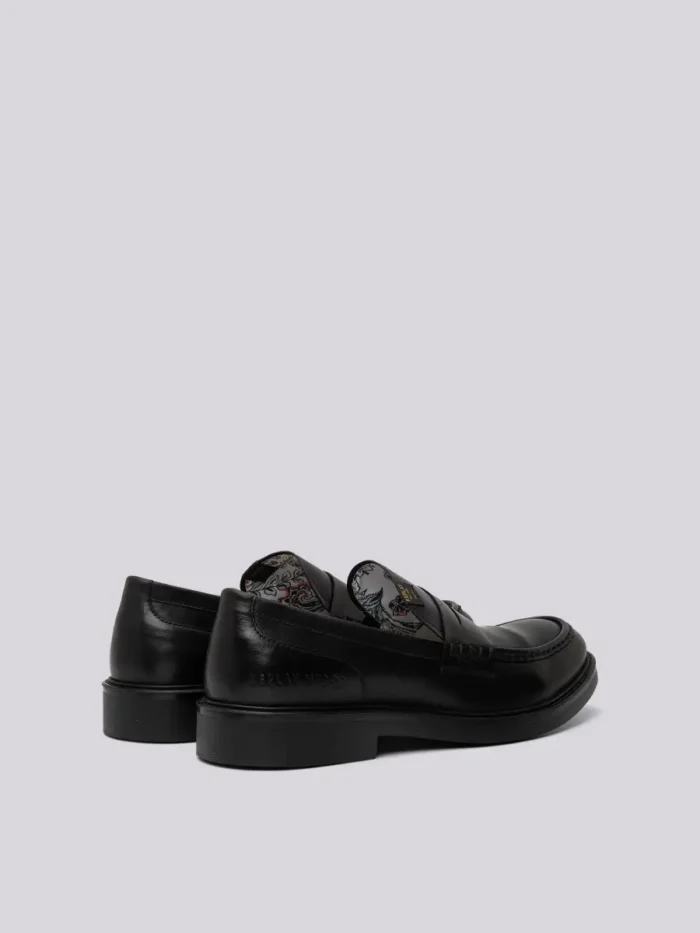 Miles LA loafer, mida iseloomustab ühevärvilisest nahast pealispind. Kontsa küljel on reljeefne logo ja ees kohandatud silt. Lillemustriga trükikangast sisevooder.