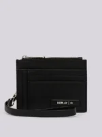 Ühevärvilisest siledast nahast kaardihoidja koos sobiva eemaldatava käevõruga. Tõmblukuga ülemise sahtliga ese on varustatud mitme kahepoolse dokumenditaskuga. Aksessuaari viimistleb kohandatud riba, millel on rombikujuline logo ja kiri ees. Pikkus 12 cm x Kõrgus 9,5 cm.