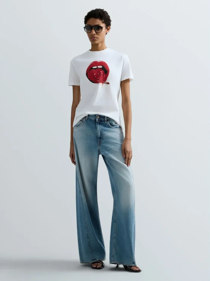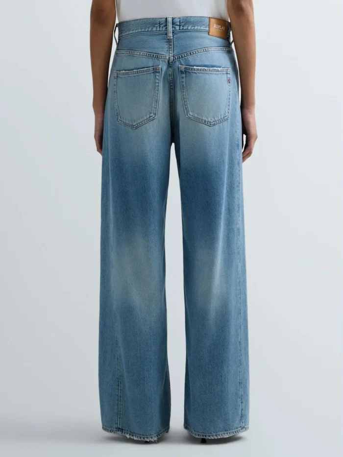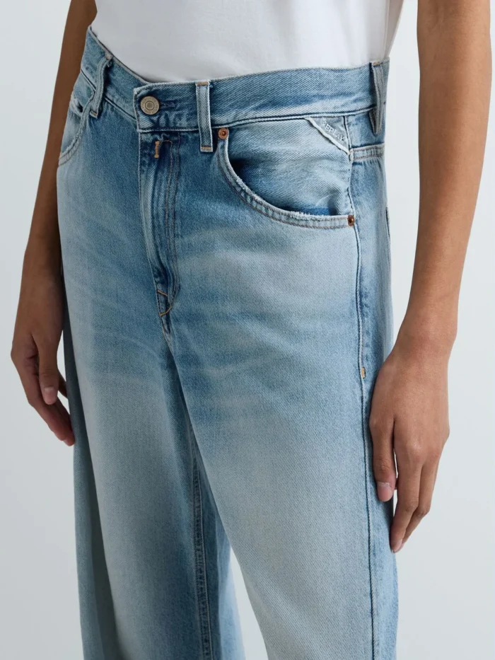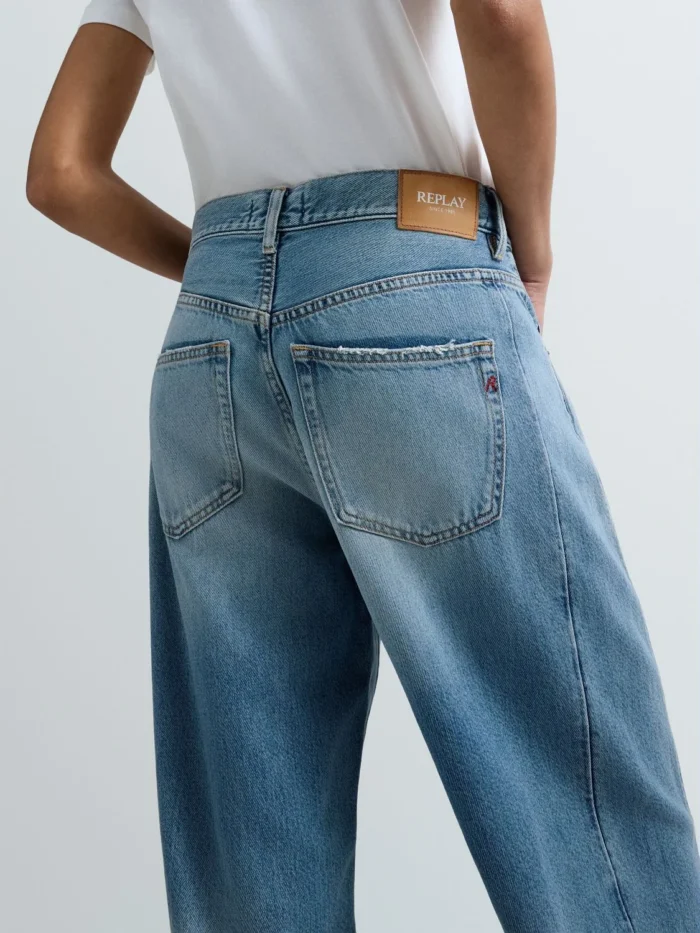 Baggy-lõikega teksad madala vöökohaga ning laia säärega. Viietaskuline mudel on valmistatud 10,5 untsisest indigo toonis puuvilla-lüotselli denimist ning sellel on ensümaatiline stone-wash ja bleach-töötlus keskmise pesutooni saavutamiseks. Need naiste teksad paistavad silma ka kulumispiirkondade kontrastide, lokaalsete rebendite ning kasutatud välimuse (used-efekti) poolest, mis on saavutatud kõrglahutusega lasertehnoloogiaga. Rõivas on viimistletud ikoonilise R-tikandiga ühel tagataskul ning väikese logoga detailiga ühel esitaskul. Kinnis nööbi ja lukuga.