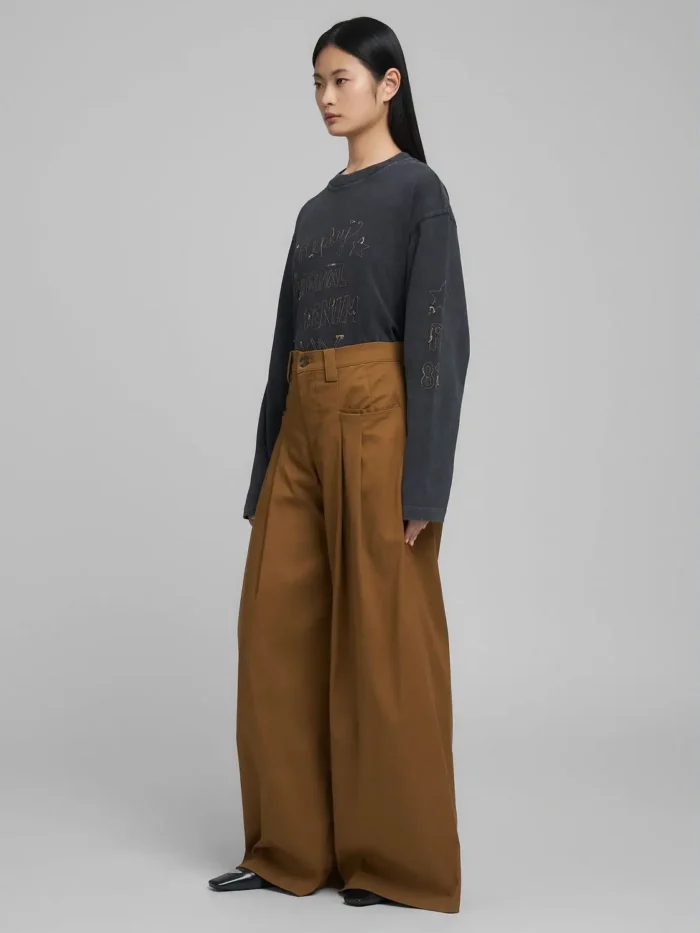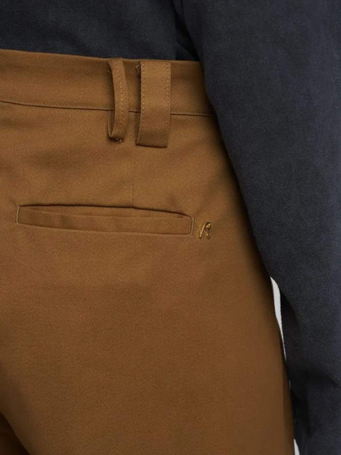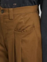 Laiade säärega ja avara lõikega venivast puuvillast/lüotsellist kavaleriitkangast püksid. Pükstel on vööaasad, kaks esitaskut ja kaks tagaküljel olevat volditud taskut, millest üks on viimistletud metallist R-detailiga, mis on Replay kaubamärgile iseloomulik. Disaini täiendavad esiküljel olevad peened lõngakujulised tükid.