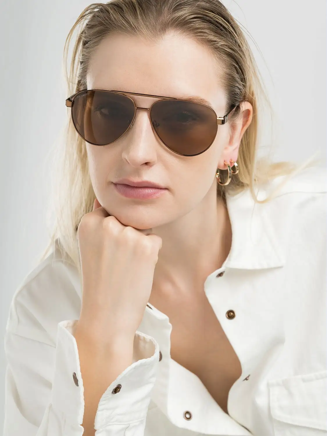 Unisex päikeseprillid ikoonilise piloodikujuga, mida iseloomustab metallraam ja atsetaatsangadest sangad mitmekülgse välimuse saavutamiseks. Sellel aksessuaaril on polariseeritud läätsed ja mõlemal sangal on trükitud Replay logo. Suurus: läätse laius 60 mm, silla laius 13 mm, sanga pikkus 145 mm. 100% METALL (KIUD);