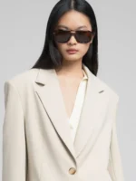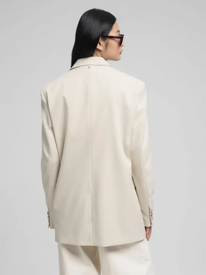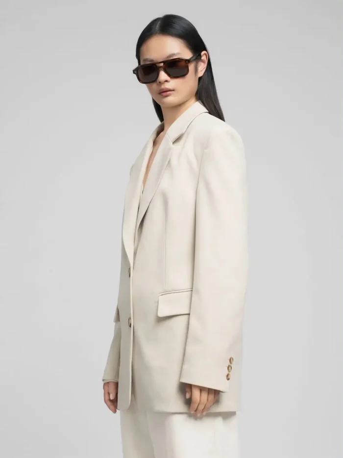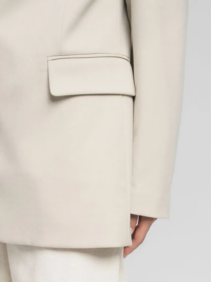 Pikk mugav lõikega pintsak pehmest venivast villasegust polüviskoosist twill-kangast. Voodriga mudelil on klassikalised reväärid, nööpidega üherealine kinnitus ja kaks klapiga taskut ees. Naiste pintsak on viimistletud ikoonilise R-metallist detailiga tagaküljel, mis on Replay kaubamärgile iseloomulik.