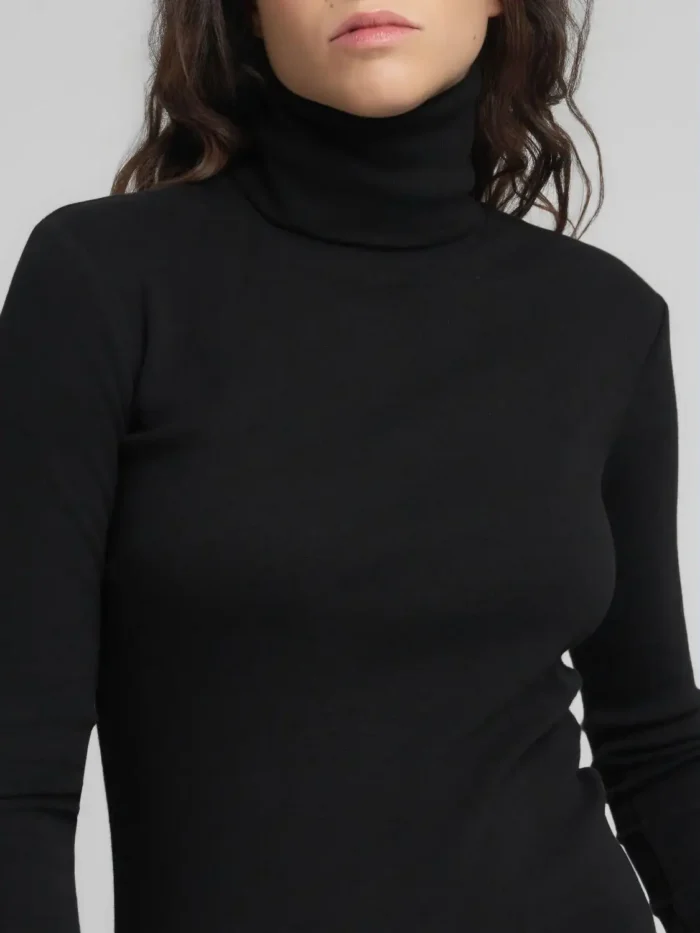 Kitsme lõikega pullover venivast melanž-puuvillasegust. See pikkade varrukatega ja kõrge kaelusega T-särk on kootud peene soonikuga.