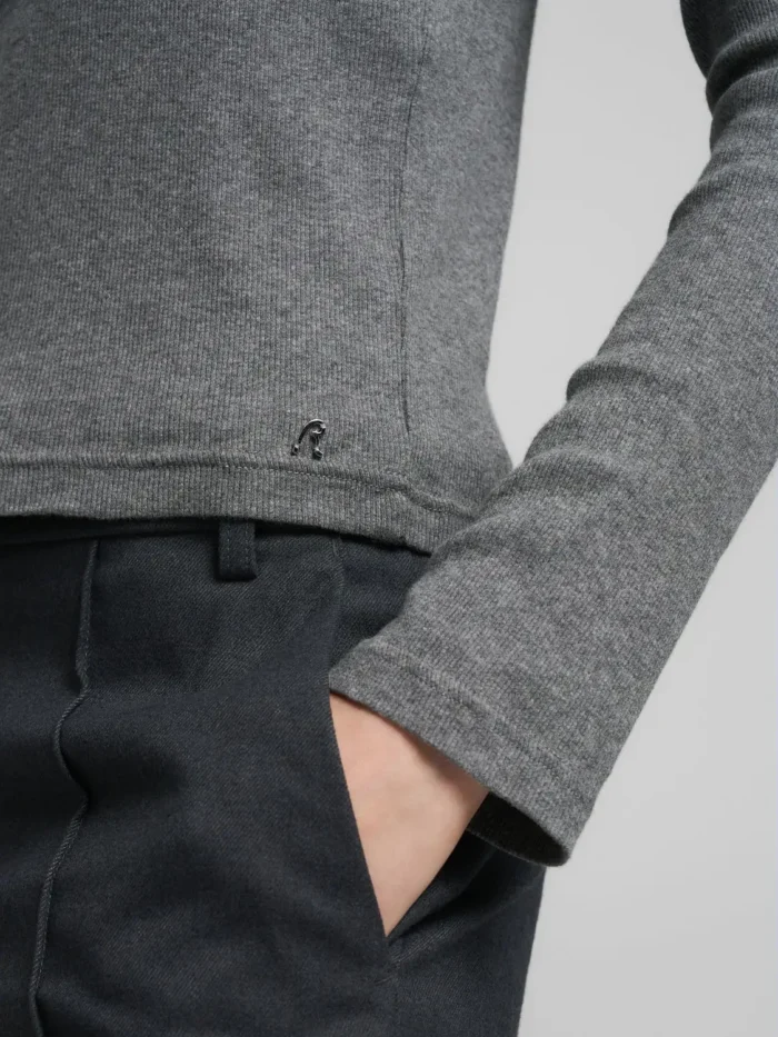 Kitsme lõikega pullover venivast melanž-puuvillasegust. See pikkade varrukatega ja kõrge kaelusega T-särk on kootud peene soonikuga.