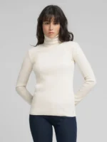 Kitsme lõikega pullover venivast melanž-puuvillasegust. See pikkade varrukatega ja kõrge kaelusega T-särk on kootud peene soonikuga.