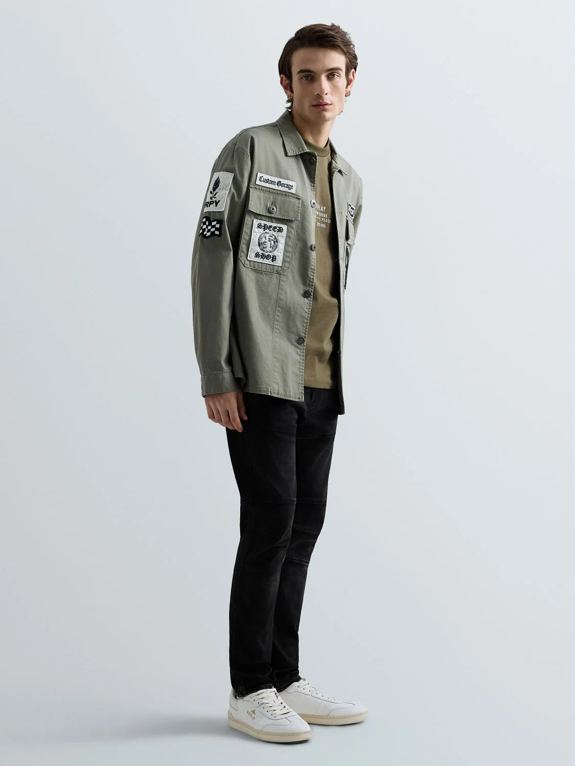 Regular-fit särk puhtast puuvillast, topelt­nööpidega mansettide ja kahe nööbitava rinnataskuga. Mudelit iseloomustavad esiküljel ja varrukal olevad kohandatud patchid, ühel taskul maksisuuruses tikitud Replay brändile iseloomulik R ning tagaküljel tikitud kiri. Ees nööpkinnitus.