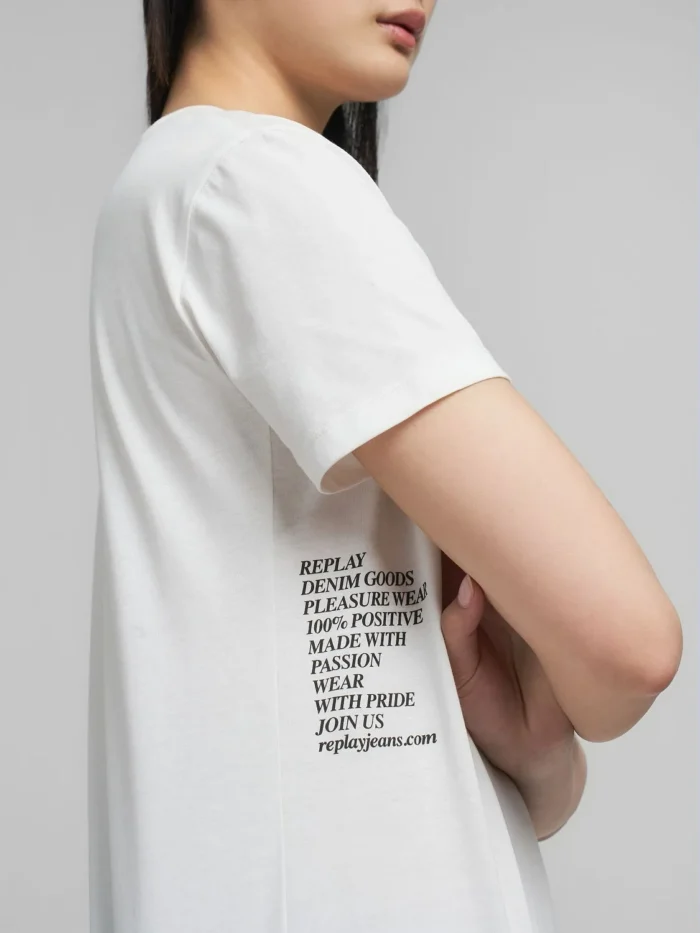 Ümmarguse kaelusega T-särk, mis on valmistatud orgaanilisest puuvillasest kangast – keskkonnasõbralikust materjalist. See lühikeste varrukatega regular-fit lõikega T-särk on kaunistatud kontrastse mini-kirjatrükiga küljel.