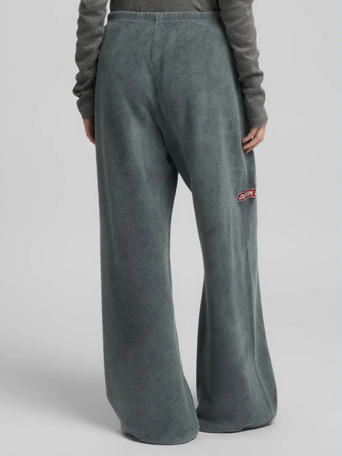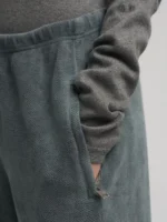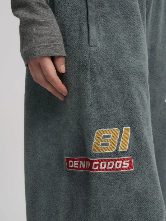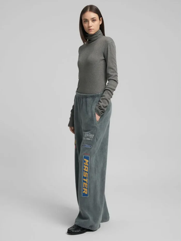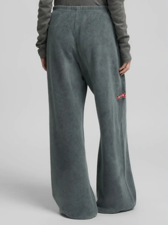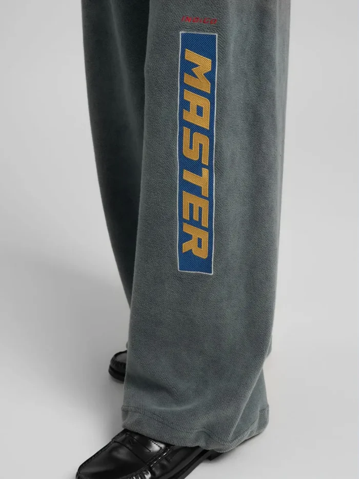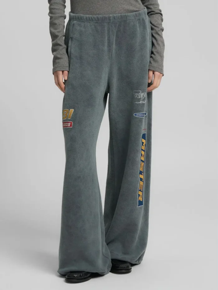 Laiad püksid puhtast rõivavärvitud puuvillast teddykangast, mis on pehme ja mugava tunde tagamiseks. Püksil on elastne vöökoht ja kaks lukuga küljetaskut ning see on kaunistatud värviliste laikude ja kontrastsete kirjadega esiküljel. 100% PUUVILL;