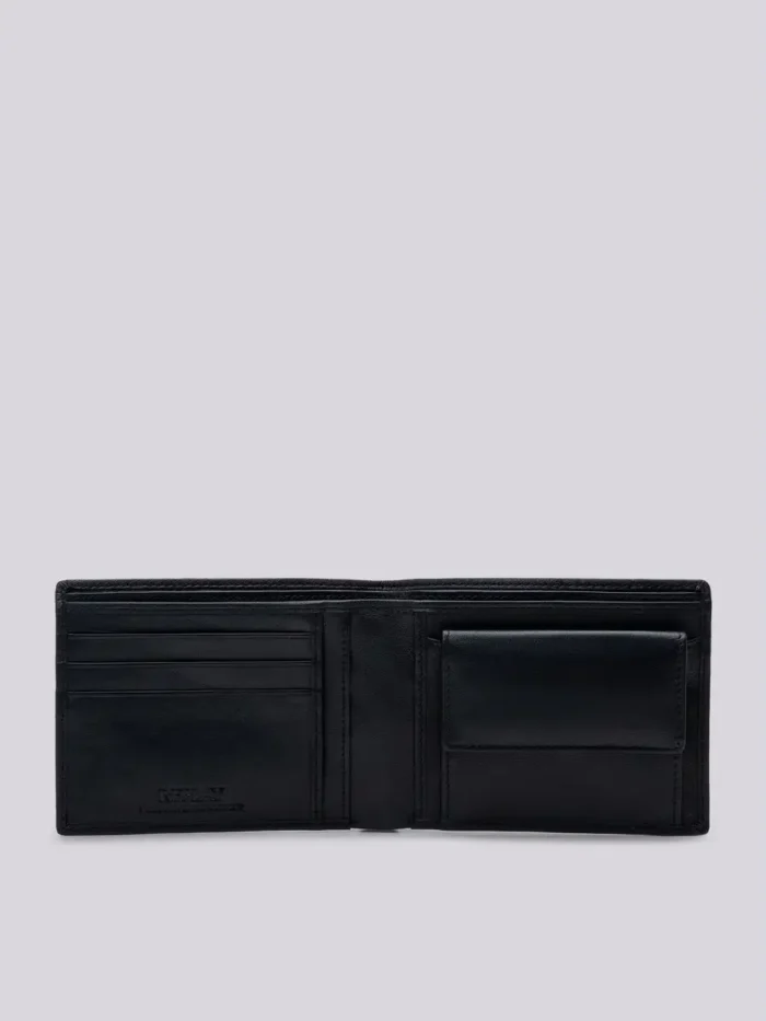 Rahakott on valmistatud siledast ühevärvilisest nahast. Sellel vasakpoolsel avaneval kahepoolsel rahakotil on sisemine sahtel märkmete ja kviitungite jaoks, ühel küljel kaardipesad ja teisel küljel klapiga münditasku. Siseküljele graveeritud Replay kiri ja välisküljel olev kohandatud riba viimistlevad tarviku. Pikkus 13 cm x Kõrgus 10 cm.