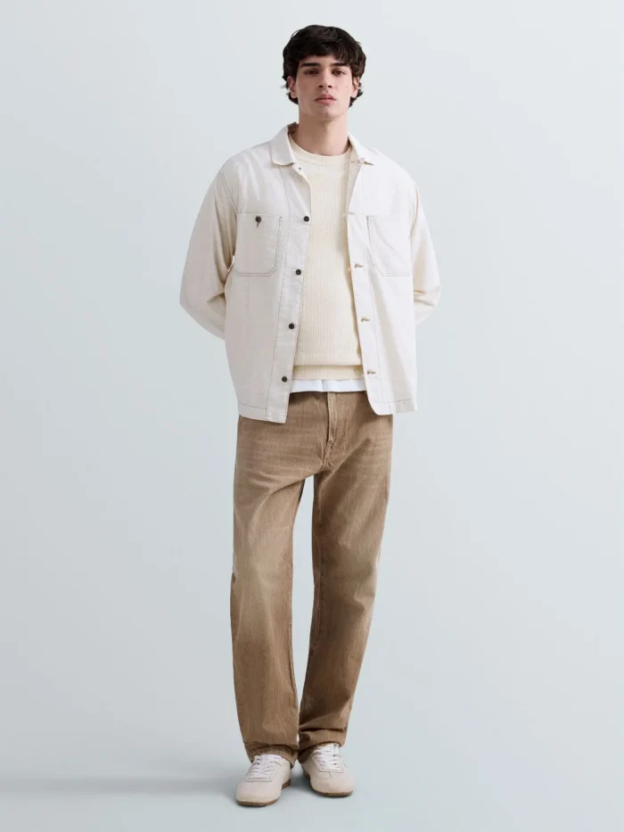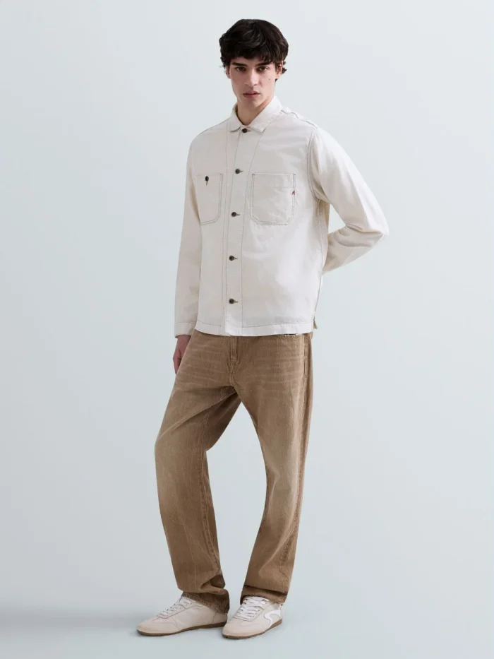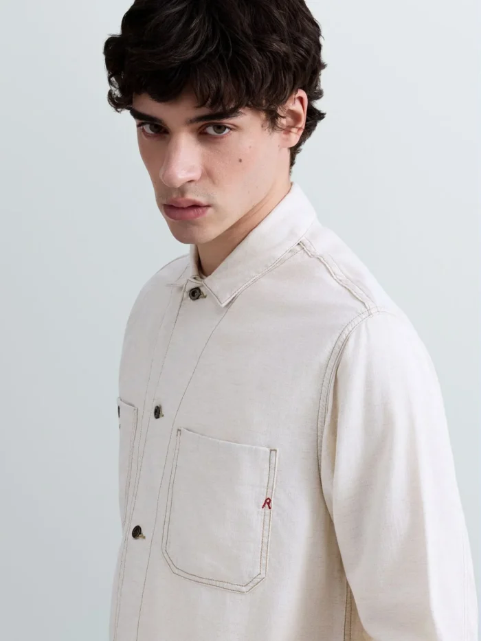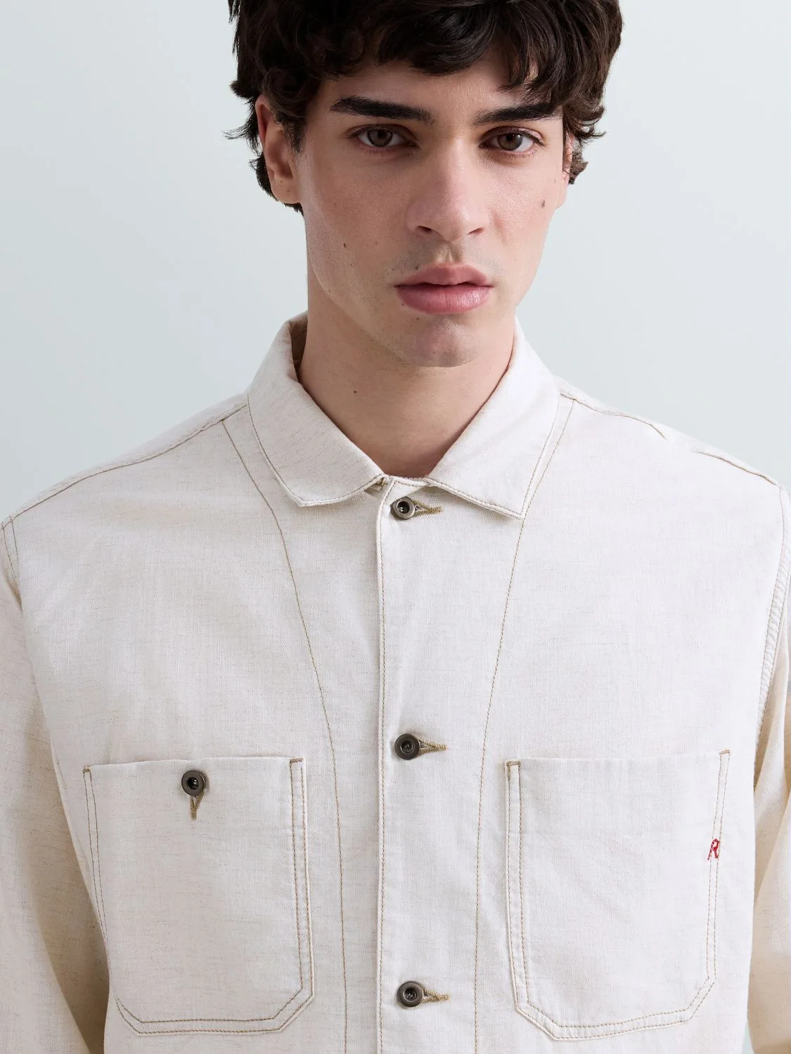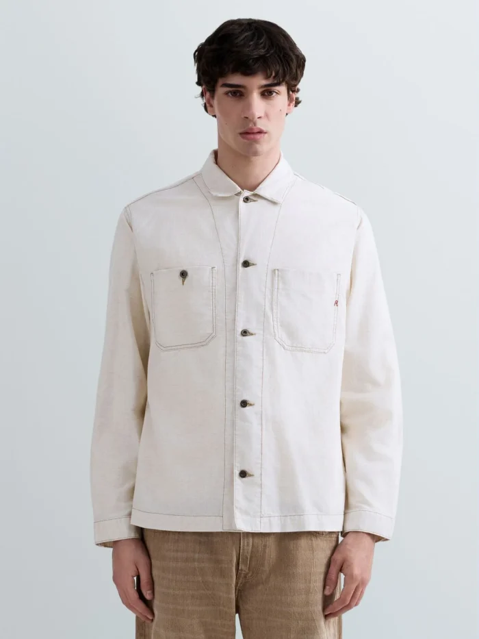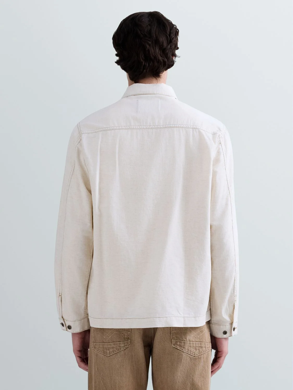 Regular-fit lõikega särkjakk on valmistatud écru-toonis denimkangast, mis koosneb linast, puuvillast ja lyocellist (5 untsi). Kangas on läbinud rinse-pesu ning lõppkuivatuse mannekeenil.