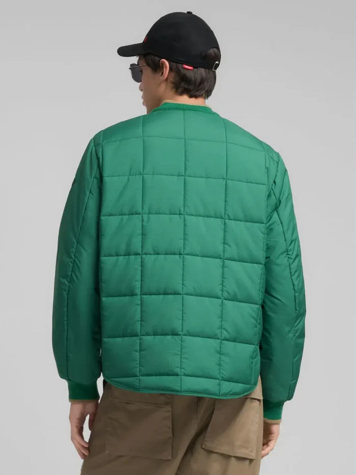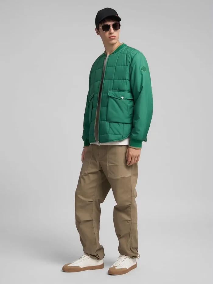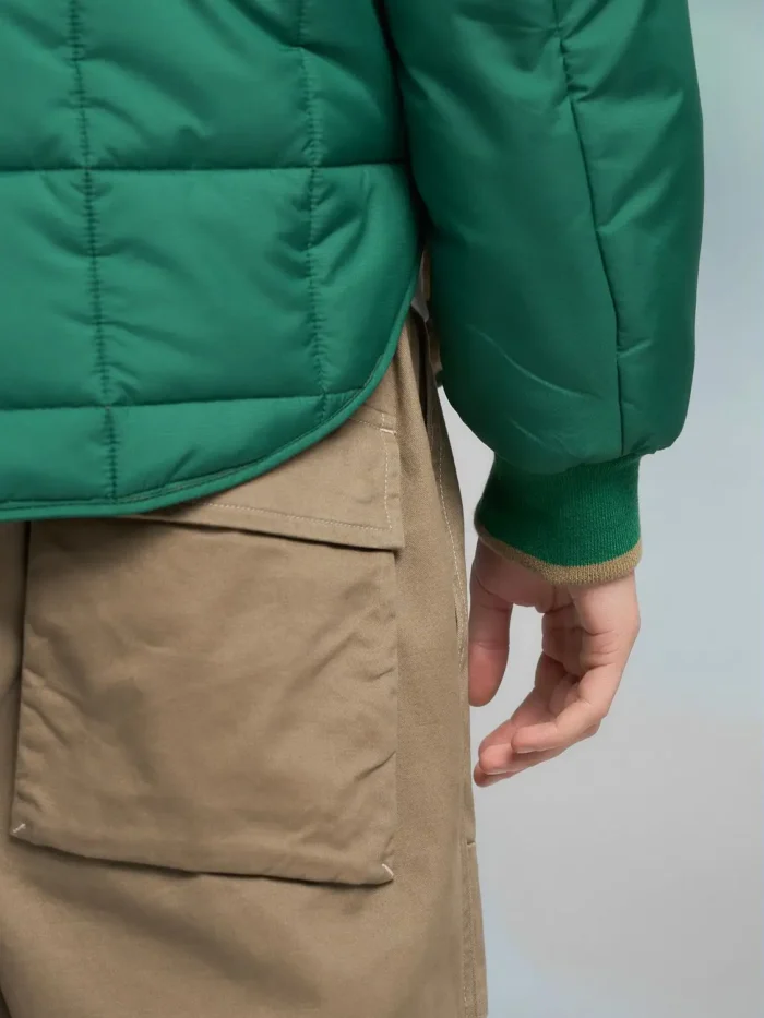 Vaba lõikega polsterdatud ja voodriga ruudulise tepitud kangast jope, mis on valmistatud taaskasutatud ripstop-polüestrist – jätkusuutlikust ja keskkonnasõbralikust materjalist. Sellel mudelil on kaks suurt klapi ja nööbiga esitaskut, originaalne ümar ääris, mis loob külgmised lõhikud, ning peen soonikkude kontrastse äärisega bomberstiilis krael ja kätiste ääres. Varrukal on eksimatu Replay teemant. Kahesuunaline tõmblukk. 100%POLÜESTER;