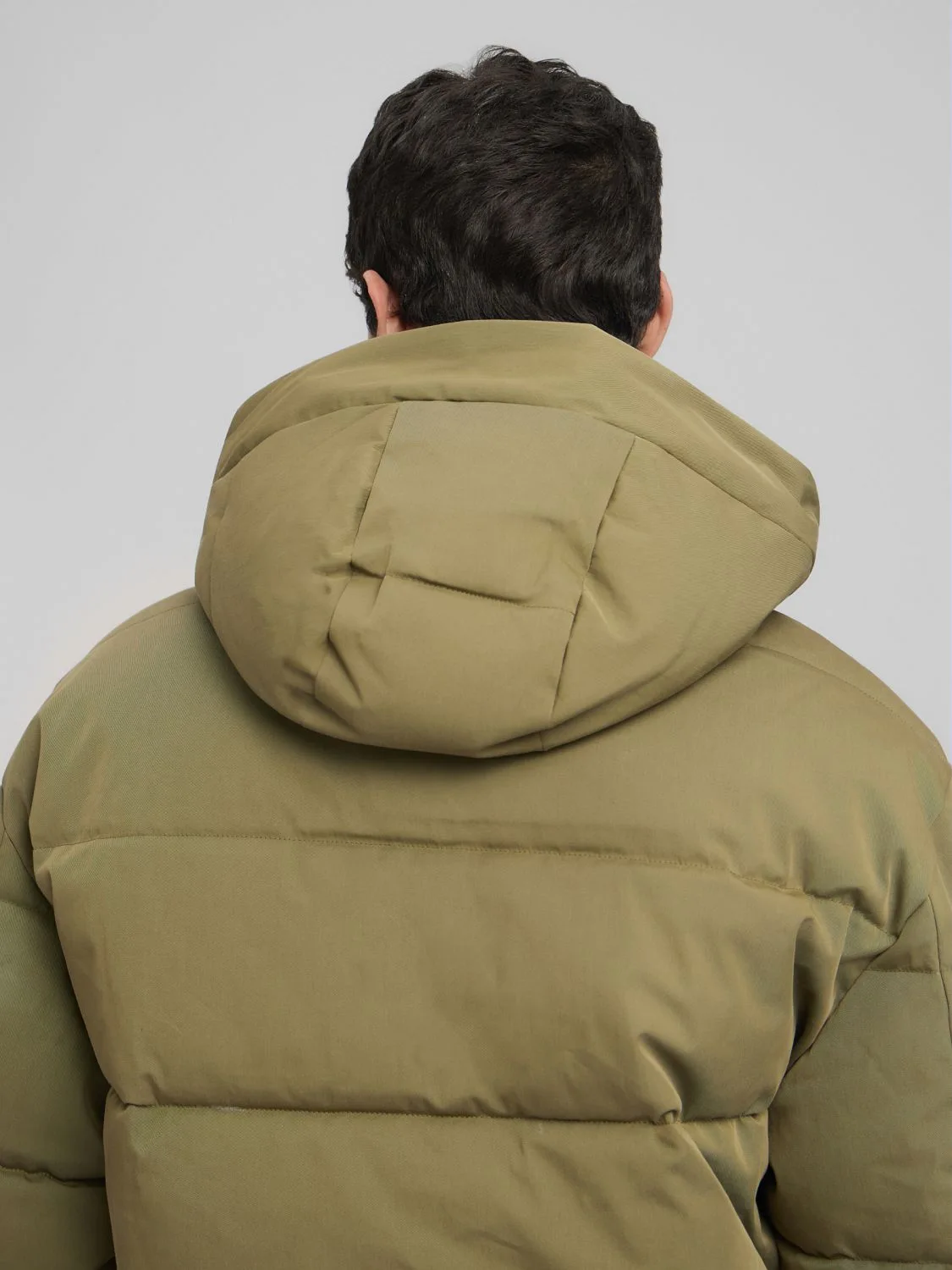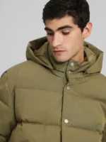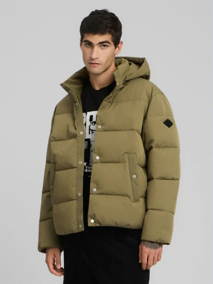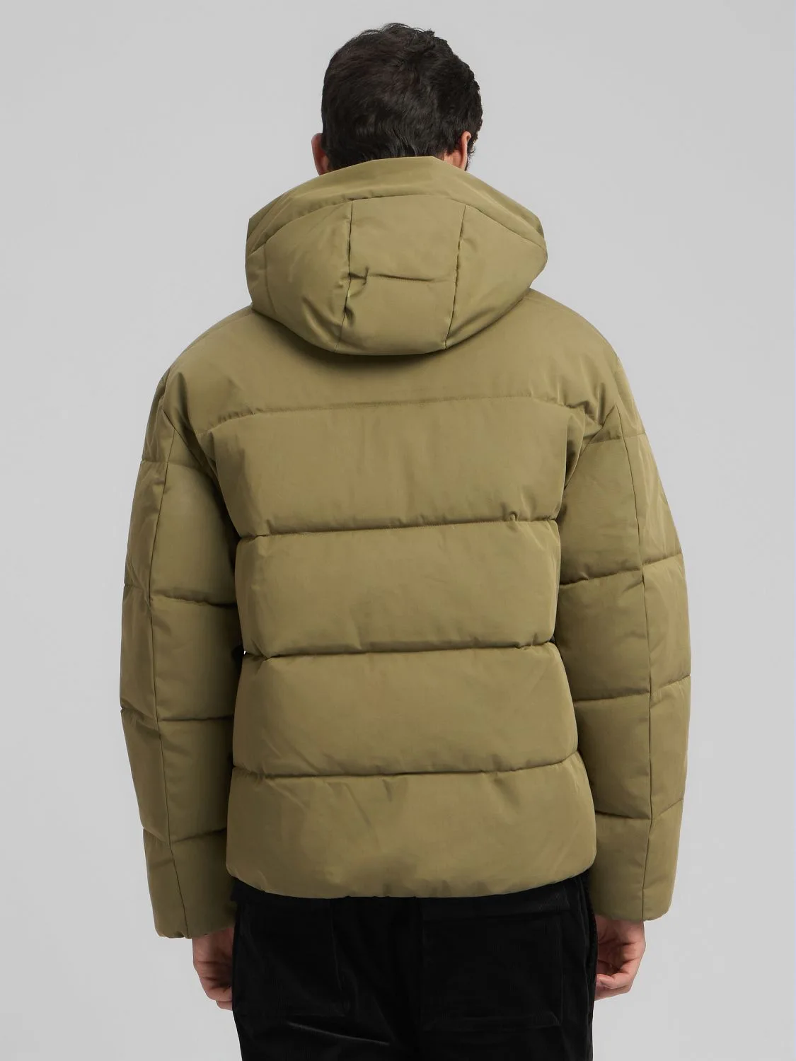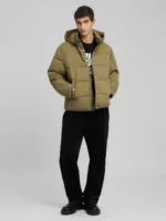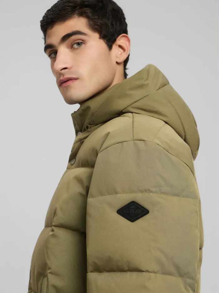 Regular-fit lõikega polsterdatud ja voodriga jakk horisontaalse teping-mustriga. Valmistatud nailoni ja puuvilla segust tvillkangast, millel on lamineeritud viimistlus, mis muudab kanga vett hülgavaks. Jakil on kaks praktilist küljetaskut trukk-kinnitusega, kapuuts ning püstkrae. Disaini täiendab varrukal äratuntav Replay teemantlogo. Nööpkinnitus.