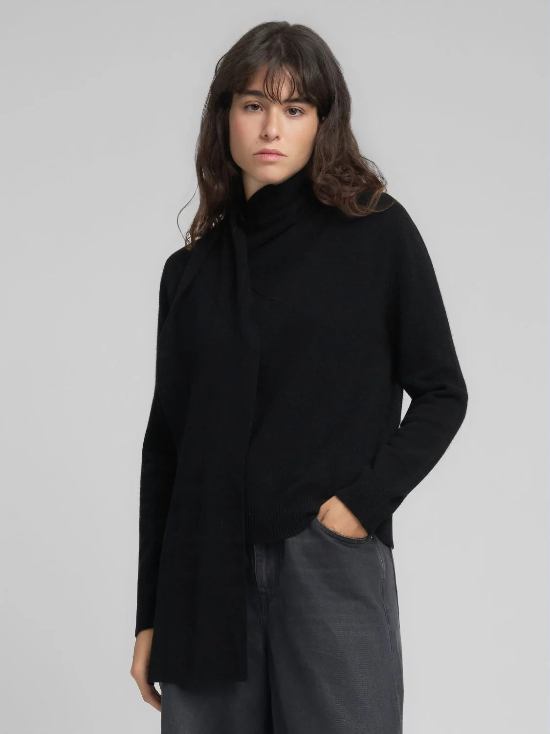 Regular-fit lõikega pullover pehmest ja soojast villasegust. Sellel pika varrukaga mudelil on varrukaotstes ja allääres peen soonikkoes viimistlus. Iseloomulik kaelus, mis jätkub samast materjalist sallina, ning seljaosal olev ikooniline R-detail – Replay kaubamärgile omane tunnus – täiendavad disaini.