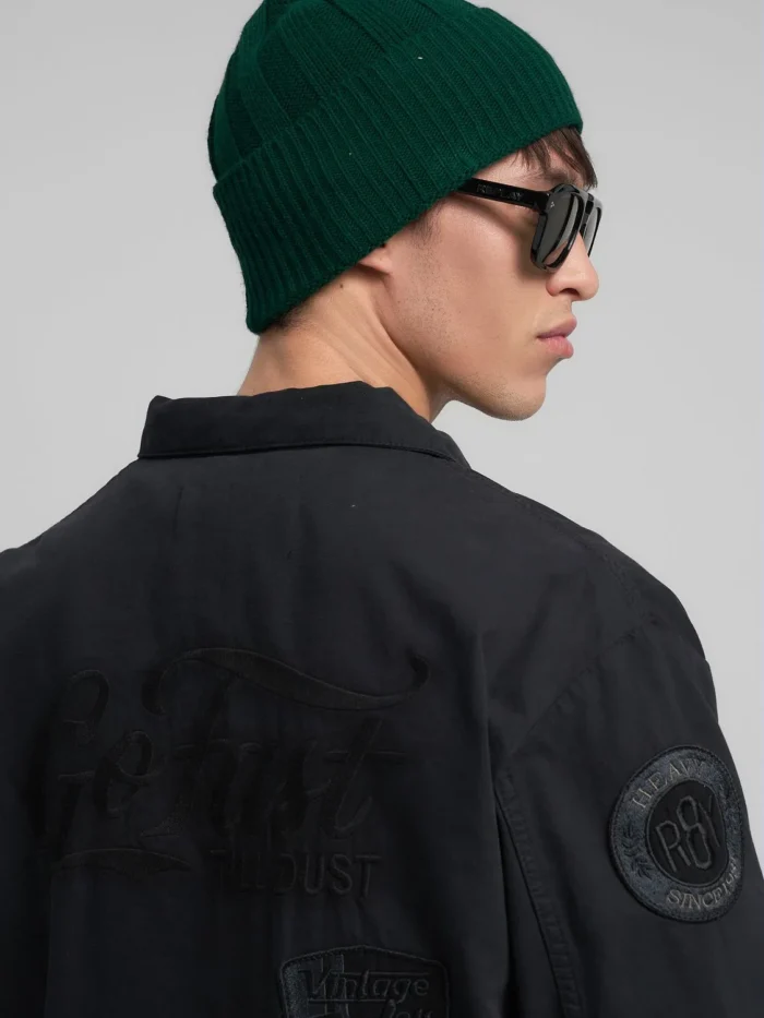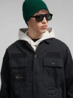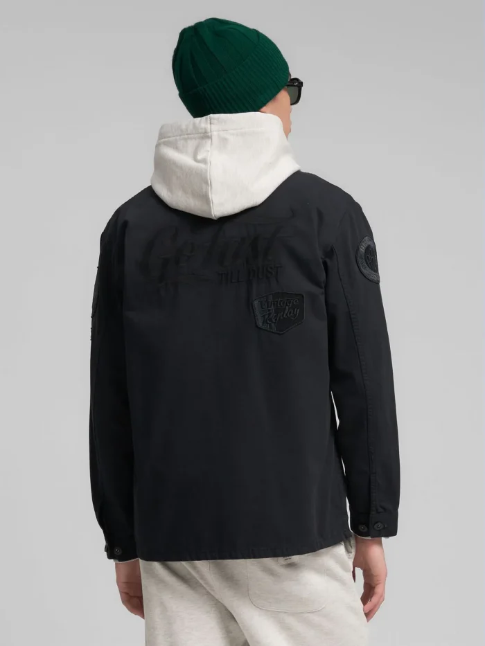 Tavalise lõikega oversärk ühevärvilisest puuvillasest twill-kangast. Mudelil on klassikaline teravaotsaline krae, kaks eestmist klapiga ja nööbitavat taskut, kahe nööbiga mansetid ning nööpkinnitus. Rõivaeset eristavad mitmed toon-toonis tikitud kirjaga patch-detailid esiosal, varrukatel ja seljal ning seljaosal paiknev suur toon-toonis tikitud kiri.