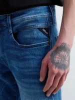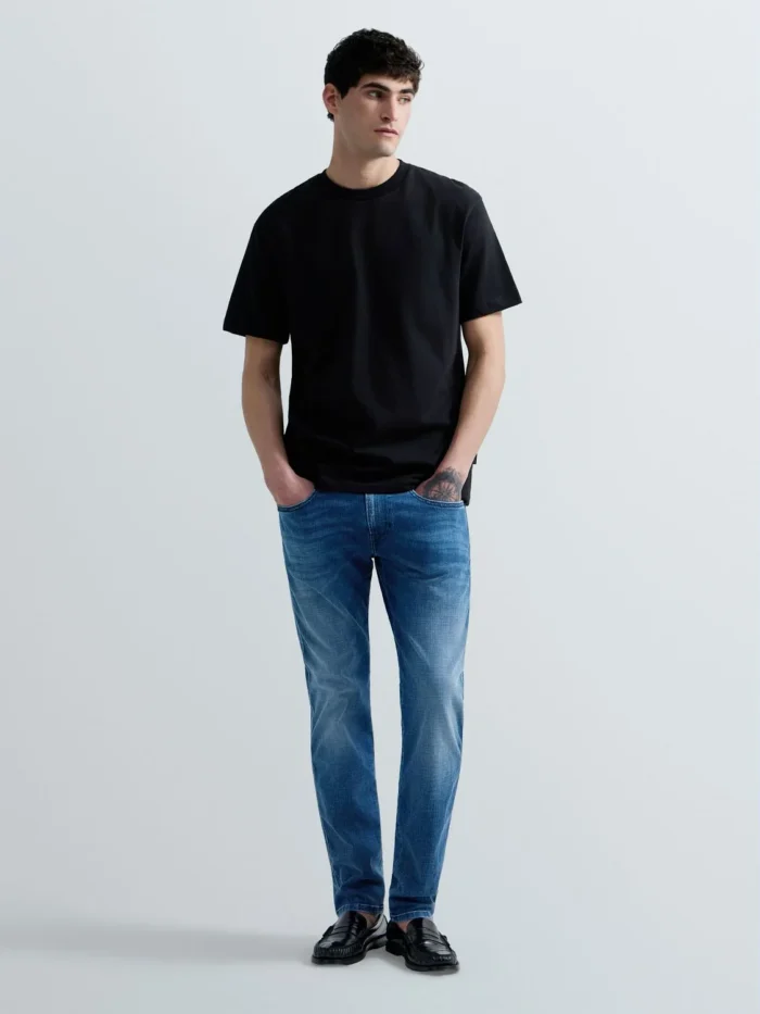 Slim-fit teksad keskmise kõrgusega värvli ja kitseneva säärega. Mudel on valmistatud 11,5 untsisest indigosinisest broken twill Hyperflex puuvillasegusest denimkangast millele on tehtud Matrix-viimistlus ning hele ensüümpesu stone wash ja bleach-töötlusega.