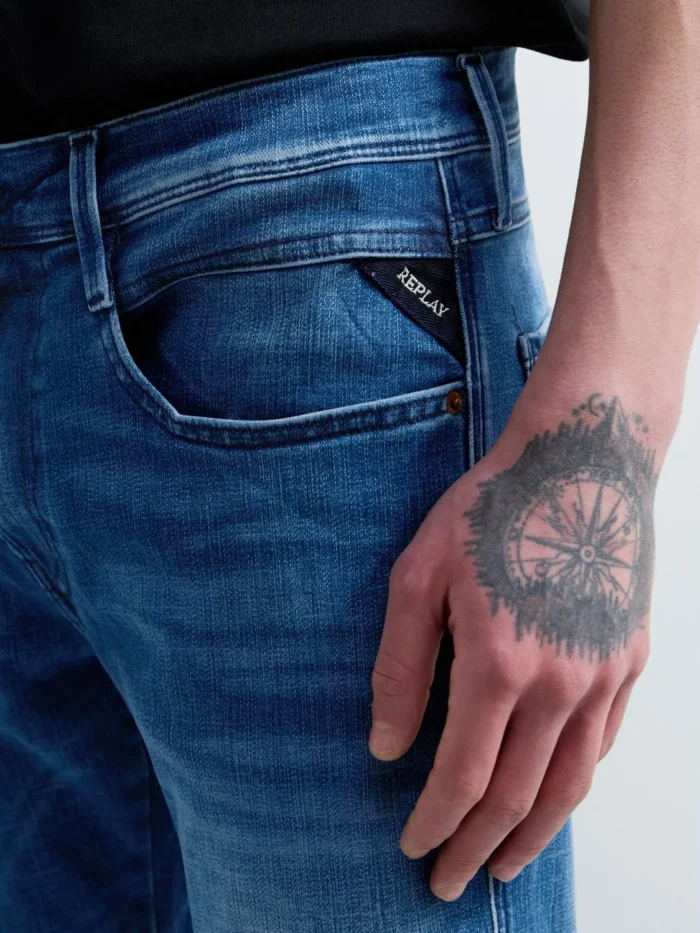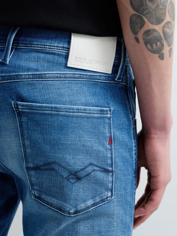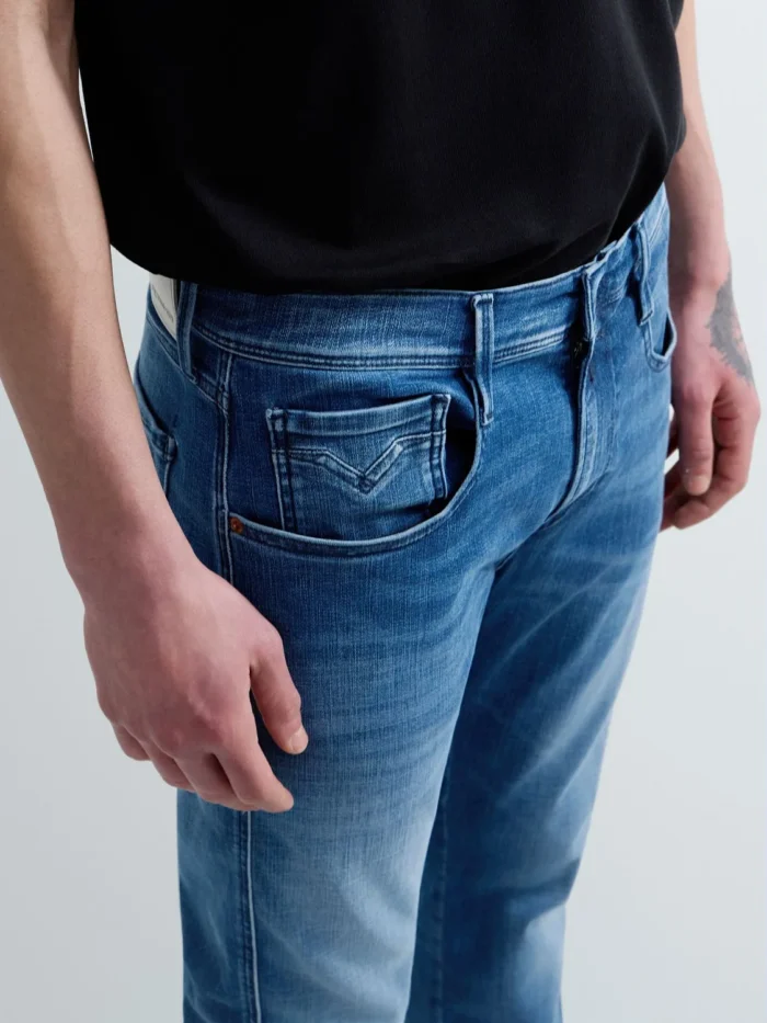 Viie taskuga mudelil on käsitsi tehtud kulumisvoldid (baffid) ja liivapaberiefekt, mis loovad kandmiskohtades täiendavaid kontraste. Disaini täiendab meeste teksadele iseloomulik ikooniline tiivakujuline õmblus viiendal taskul ja tagataskutel, millest üht kaunistab R-tikand.