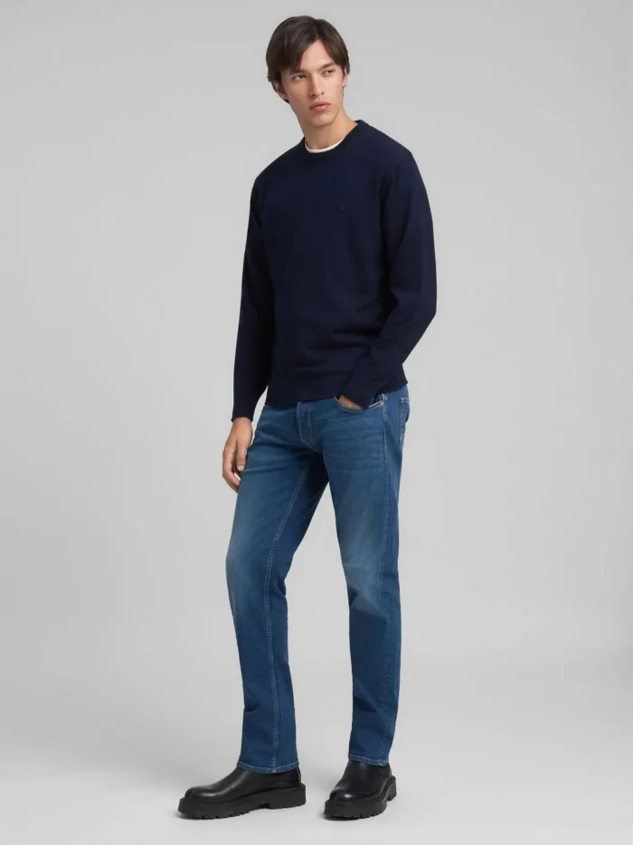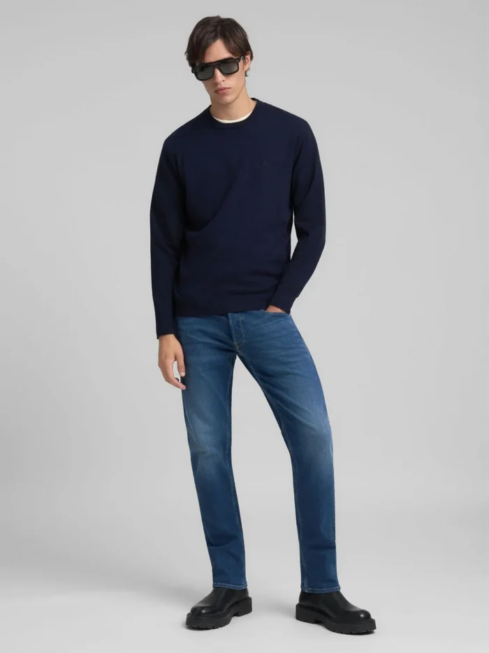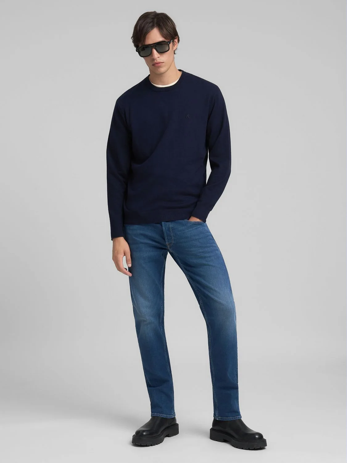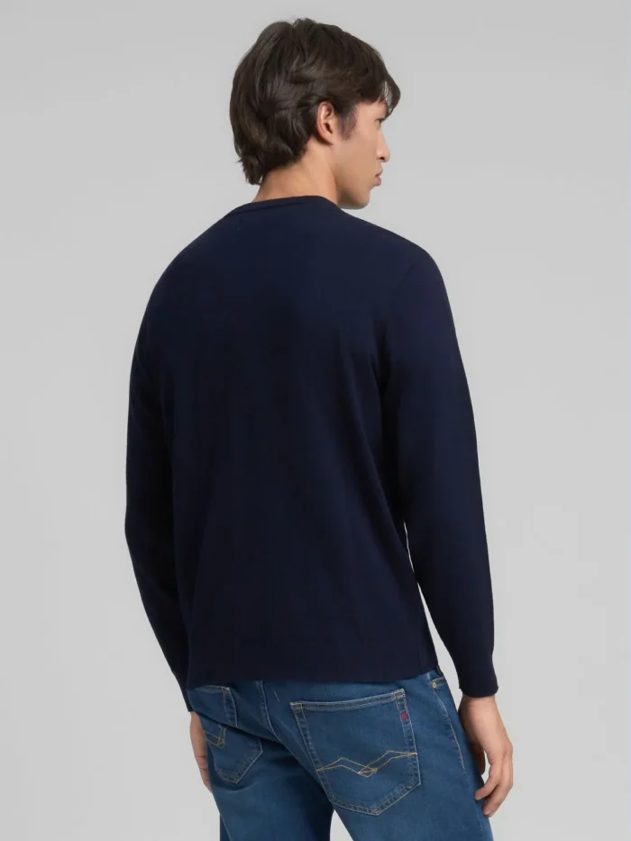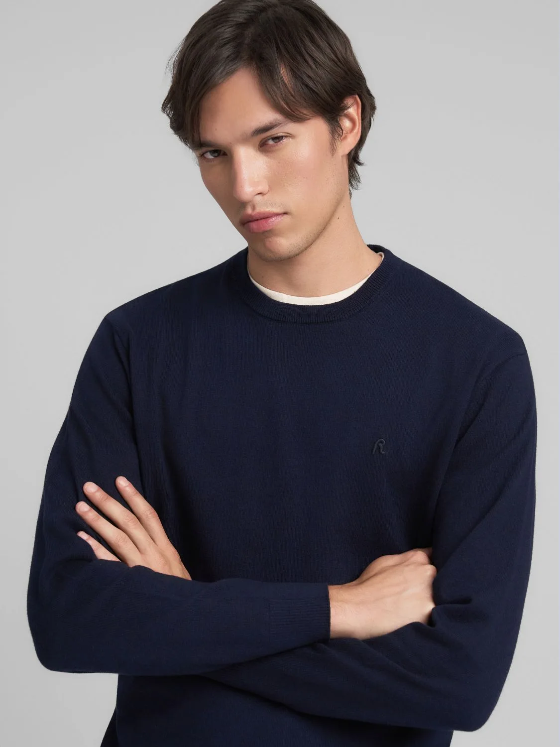 Regular-fit lõikega ümara kaelusega kampsun, valmistatud pehmest ja mugavast ühevärvilisest puuvilla-kašmiirisegust. Mudelil on pikad varrukad kergelt langevate õlgadega ning soonikkootud kaelus, varrukaotsad ja alläär. Minimalistlikku disaini täiendab rinnal toon-toonis tikitud ikooniline R-logo.