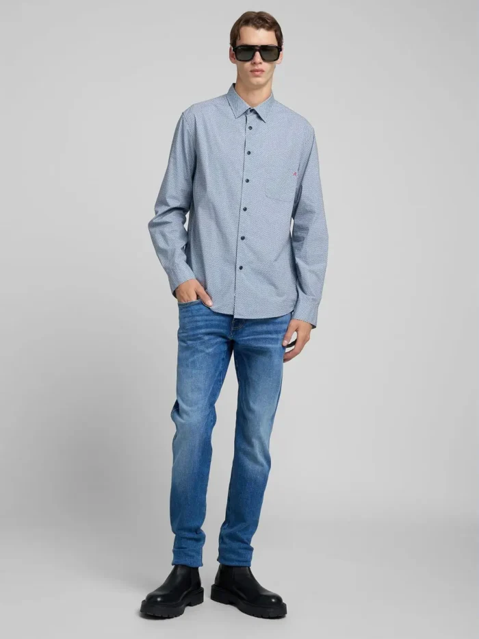 Tavalise lõikega puhtast puuvillapopliinist särk, millel on üleni mikrotrükk. Sellel pikkade varrukatega särgil on ümar äär, rinnatasku ja praktiline nööpkinnitus, samuti nööbid kätiste ääres. Särgi viimistlevad ikooniline R-tikand rinnataskul ja meie arhiiviline logo kinnitusel. 100% PUUVILL;