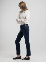 Sirge istuvusega teksad, millel on keskmine vöökoht ja sirge sääreosa puusast allääreni mugavaks istumiseks. See viie taskuga tükk on valmistatud 10 untsi tugevast venivast tumedast indigo-teksariidest, millel on tume pesu ning seda eristab käsitsi vurrud ja kraapimine ning ensüümpesu, mis loob värvikontrasti suurema kulumise kohtades. Tagataskutel on meie ikoonilised kajakate tiivaõmblused ja ühel taskul on R-tikandid, samas kui ühes esitaskus on väike kaubamärgiga sisestus. Tõmbluku ja nööbiga kinnitus.